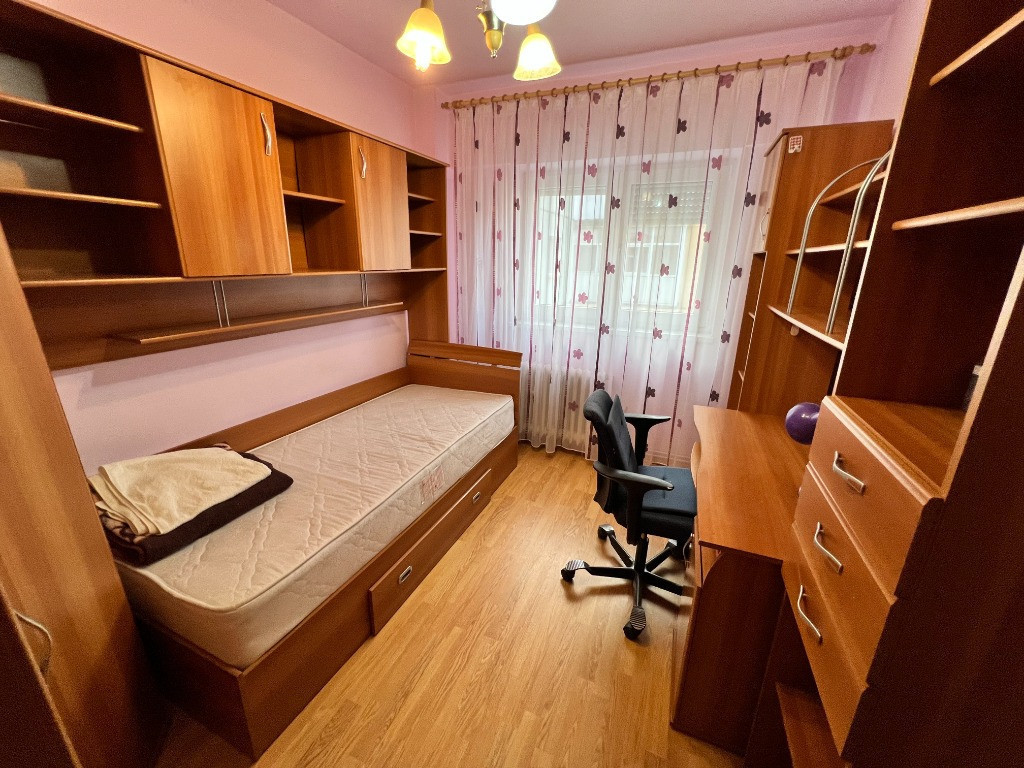 INCHIRIEZ APARTAMENT 4 camere decomandat, situat la etajul 3 al unui imobil P+ 4, in zona Vasile Aaron, avand o suprafata utila de aproximativ 86 mp. Compartimentarea este dispusa astfel: 4 camere decomandate, bucatarie,2 bai,balcon, hol. Imbunatatiri: gresie, faianta, parchet, usi interioare celulare, use la intrare metal, geamuri termopan cu tamplarie PVC, CT proprie, acces Internet prin fibra optica, cablu TV , termoizolatie exterioara. Apartamentul se inchiriaza mobilat si utilat . Pret: 550 Euro negociabil + garantie 1 luna .Informatii :0751775754