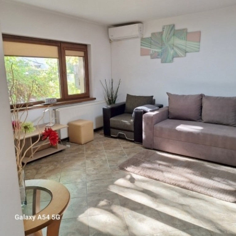 Proprietar, ofer spre inchiriere garsoniera la parter, fara balcon, bloc de 4 etaje, pozitionat in spatele rondului Alba Iulia/bulevardul Decebal. Zona foarte linistita, garsoniera este pozitionata cu vedere la spatiul verde, inconjurata de vile dotate cu camera video. Bloc termoizolat, curat, camera video, incalzire prin termoficare. Garsoniera este spatioasa, are AC desi, fiind la parter, nu este foarte cald vara. Canapeaua este recent cumparata, extensibila si foarte comoda. Are si o canapea mica in zona de relaxare/cafea. Bucataria este mare, baia cu dus si geam! In zona exista multe magazine, restaurante, cafe-baruri, linii transport 104, 70, 79, metrou Muncii la 8 minute, tramvaie. Se poate parca pe stradute in jurul blocului. Piete apropiate Ramnicul Sarat si Obor. Pret 340 euro.