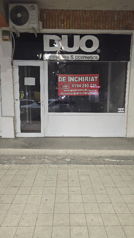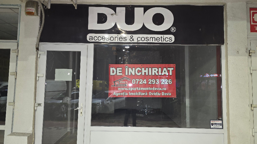 Inchiriez spatiu comercial in Deva, zona ultracentrala (Decebal, Exim Bank), suprafata utila 25 mp, vitrina la bulevard de 3,5 metri liniari, compus din sala. Se foloseste baia de la spatiul alaturat. Este pretabil pentru comert, birou sau cabinet. Utilitati: curent si instalatie de aer conditionat. Pret chirie: 400 euro/ luna + garantie + Comision Agentia Imobiliara 50% din prima chirie, pentru chirias. Tel: 0724 293226. Mai multe poze si detalii pe www. apartamentedeva.ro sau la Agentia Imobiliara Ovidiu Deva.