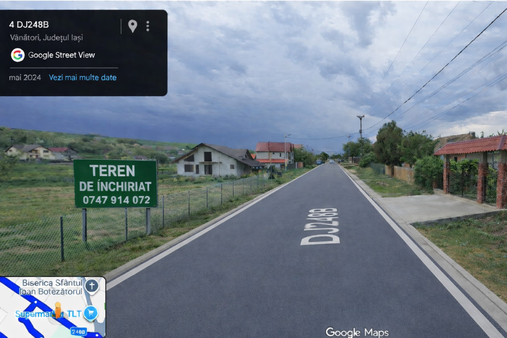 Închiriez teren – Vânători, jud. Iași (DJ 248B) Închiriez teren situat în Vânători, județul Iași, cu deschidere directă la DJ 248B, zonă accesibilă și în dezvoltare. Terenul este plan, cu acces facil din asfalt, potrivit pentru depozitare, activități comerciale, parcare utilaje, agricultură ușoară sau alte activități. Suprafață: 725 mp Acces: drum asfaltat Utilități în zonă (curent/apă – după caz) Zonă locuită, vizibilitate bună Disponibil imediat Locație: Vânători – Iași Preț chirie: 1 lei / negociabil Telefon: 0747914072