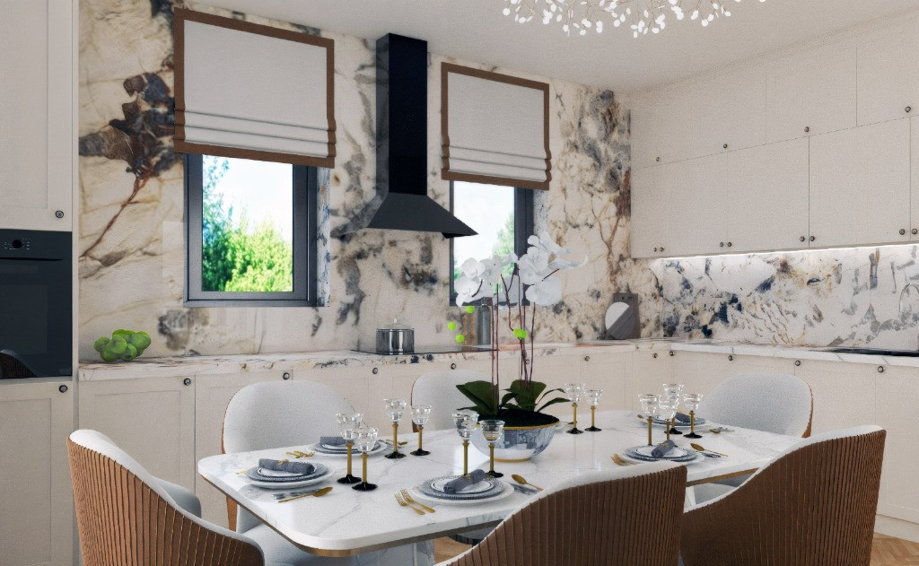Un proiect boutique, refugiul tău între lac și pădure, în inima celei mai exclusiviste zone din Corbeanca – Laguna Albastră. Proiect intim, format din doar 12 case individuale, concepute pentru cei care nu fac compromisuri atunci când vine vorba de liniște, natură și stil de viață. Există locuri care nu au nevoie de prea multe cuvinte. Locuri care îți spun totul prin liniștea lor : prin mirosul de pământ umed după ploaie, prin lumina care se joacă printre frunzele copacilor și se oglindește timid în apa lacului. Intrarea Lacului Residence este un astfel de loc. Un proiect cu suflet, construit pentru cei care simt că viața merită trăită în tihnă. Aici nu cumperi doar o casă. Alegi să trăiești într-un cadru natural unic, unde fiecare zi începe cu inspirație și se încheie cu recunoștință. Grădina ta devine refugiul, iar casa – acel spațiu intim și aerisit unde te simți cu adevărat tu. Este mai mult decât o investiție imobiliară. Este parte din viața ta în care liniștea, siguranța și apropierea de natură se împletesc armonios. Cum ar fi daca fiecare dimineata ar incepe aici, in Intrarea Lacului Residence -Corbeanca? Această locuință reprezintă expresia desăvârșită a rafinamentului și armoniei estetice. Încă de la primul contact vizual, interiorul impresionează printr-o lumină naturală abundentă care pătrunde generos prin ferestrele mari, conturând spații aerisite și primitoare. Ne-am imaginat cum se poate amenaja aceasta casa pentru tine. Zona de living generoasă și luminoasă, cu accente moderne și naturale. Parchetul așezat în model Chevron adaugă un plus de eleganță clasică, în timp ce mobilierul cu forme fluide și texturi fine creează o ambianță relaxantă. Perdelele și draperiile diafane filtrează delicat lumina, conturând un joc subtil de umbre și transparențe. Bucătăria este un punct central al casei, unde marmura cu texturi spectaculoase devine element decorativ principal, îmbrăcând elegant pereții și blaturile. Mobilierul cu fronturi mate, într-o nuanță caldă de crem, este completat de mânere discrete și corpuri de iluminat subtile, conturând o atmosferă sofisticată. Masa de dining, cu blat de marmură și scaune tapițate în tonuri neutre, invită la momente de liniste si bucurie. Dormitorul matrimonial este o oază de liniște, decorat în nuanțe calde de bej și maro, iar mobilierul minimalist păstrează aerul ordonat și relaxant al camerei. Un alt colț deosebit este zona de dormit integrată cu un spațiu de relaxare sau lucru, separată discret de un perete decorativ cu riflaje din lemn. Această delimitare ingenioasă oferă intimitate și funcționalitate fără a sacrifica deschiderea vizuală a camerei. Întreaga casă este o îmbinare perfectă între eleganță, funcționalitate și naturalețe. Materialele, finisajele de calitate superioară și paleta cromatică echilibrată transformă fiecare spațiu într-o experiență vizuală și senzorială. Este o locuință care inspiră, încântă și oferă acel sentiment rar de "acasă", în cel mai frumos sens al cuvântului. Detalii Tehnice si Confort Intrarea Lacului Residence a conceput fiecare locuința pentru a răspunde nevoilor unei familii moderne, cu accent pe confort, siguranță și intimitate. • 12 case individuale – au rămas doar 5 la vanzare • Suprafața utilă: 210 mp • Suprafața construită: 270mp • Teren: 630 mp • Piscina, jacuzzi, saună, carport pentru doua masini • Design modern, compartimentare eficientă • Luminozitate naturală abundentă • Finisaje premium si design contemporan Compartimentări interioare Parter: living 36mp, bucătărie 17,8 mp, birou 16mp, CT=6mp, Gs=4.4mp, terasă acoperită si incalzita electric 25mp Etaj: zona matrimoniala cu dressing si baie 49mp, dormitoare 21mp si 16mp, dressing hol baie 8.5mp Finisajele Interioare Living si dinning • Pardoseala din parchet special dublu stratificat pentru încălzirea în pardoseală, plintă duropolimer de 8cm. • Peretii tencuiti si zugraviti cu vopsea lavabila alba. • Tavanul izolat cu rigips pe structura metalica si zugravit cu vopsea lavabila alba. • Cablare tv/internet/telefon este prevazuta Bucatarie • Pardoseala din parchet special dublu stratificat pentru încălzirea în pardoseală, plintă duropolimer de 8cm. combinat cu inserții de gresie • Peretii culoare alb • Tavanul izolat cu rigips pe structură metalică și zugrăvit cu vopsea lavabila albă • Alte dotări prevazute in proiect/buget: priza si scurgere pentru masina de spalat vase, racorduri pentru chiuveta, aragaz/hota, cuptor, frigider/congelator. Bai • Amenajare in băi finisaje și detalii lux. • Prize pentru dulăpioare cu oglindă, uscător de par, aparat de ras. • Mobilier pentru chiuvete in toate bai. Scara interioară • Trepte din granit ; • Mâna curentă design ; Dormitoare • Pardoseala din parchet special dublu stratificat pentru încălzirea în pardoseală, plintă duropolimer de 8cm. • Pereții tencuiti și zugraviți cu vopsea lavabila albă. • Tavanul izolat cu rigips pe structura metalică și zugrăvit cu vopsea lavabilă albă. • Cablare TV/internet/telefon.