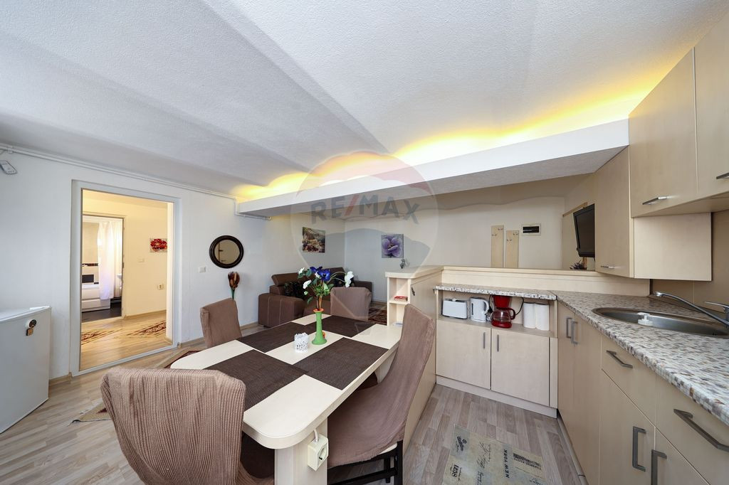 Apartament de vânzare – Centru Istoric Brașov, Str. Castelului În inima Brașovului, pe una dintre cele mai circulate și pline de viață străzi din Centrul Istoric, se află un apartament cu farmec aparte, situat la un demisol înalt care, datorită compartimentării și luminii naturale, oferă senzația unui spațiu aflat la nivelul solului. Cu o suprafață utilă de 115 mp, proprietatea are o compartimentare semidecomandată și este perfect adaptată atât pentru locuire, cât și pentru investiție. În prezent funcționează în regim hotelier, având o capacitate de cazare de până la 9 persoane și un randament anual de 11,25%, ceea ce o face extrem de atractivă pentru un investitor. Caracteristici principale: Suprafață utilă: 115 mp Compartimentare: semidecomandat Camere: 5 (din care 3 dormitoare) Bucătării: 2, ambele deschise Băi: 3 Construcție: cărămidă Incapere boxă inclusă Curte comună cu acces auto direct din Str. Castelului Destinație: spațiu cu alte destinații înscrise în CF Capacitate maximă cazare: 9 persoane Preț vânzare: 270.000 € (2.347,83 €/mp) Un apartament ce reunește istoria și modernul, liniștea unei curți interioare și vibrația Centrului Istoric. Un loc unde investiția sigură se împletește cu frumusețea unui spațiu autentic, gata să-ți scrie povestea. Contactează-ne acum pentru a programa o vizionare și a descoperi cum această proprietate poate deveni noul tău proiect de succes sau cămin în inima Brașovului.