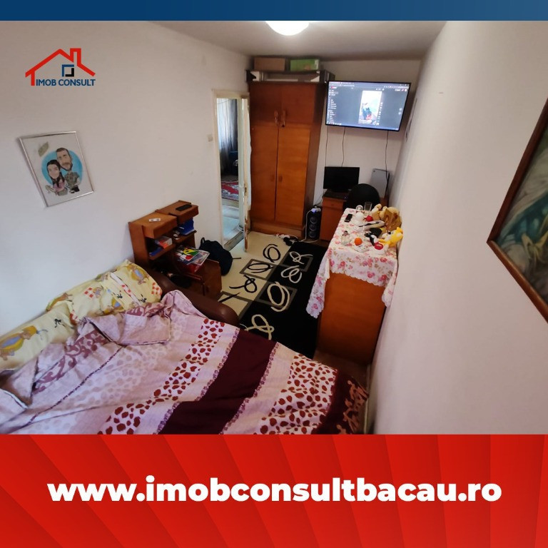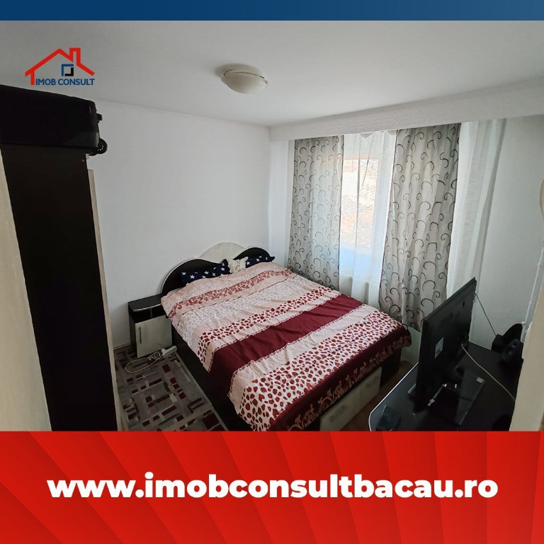 Echipa Imob Consult Bacau, va ofera oportunitatea unei investitii sigure sub forma acestui apartament cu trei camere decomandate foarte bine luminate. Daca esti in cautarea unei locuinte spatioase cu o compartimentare practica, acest apartament este ceea ce iti doresti! Imobilul dispune de trei camere decomandate, izolare termica exterioara si sarpanta ce ajuta la mentinerea unei temperaturi optime in sezonul cald . Daca consideri ca aceasta proprietate ti se potriveste, nu ezita sa ne contactezi la nr. de tel: Daniel: 0754.583.811, Corina: 0740.288.297, , sau la sediul agenției noastre, Imob Consult Bacau, situat pe strada Banca Națională nr. 27 la intersecția cu Str. Neagoe Vodă, langa Irish Pub.