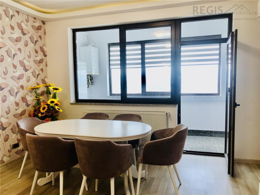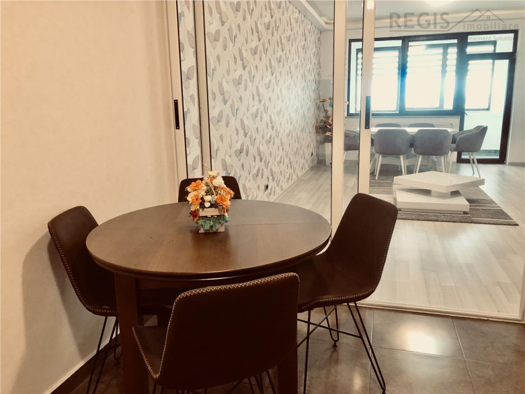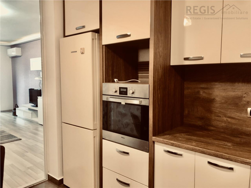 ID INTERN : 6389 Regis Imobiliare va propune spre vanzare un apartament cu 2 camere, structura mare, situat la etajul 7 din 10, in complexul rezidential Isaran 2, una dintre cele mai cautate zone din Brasov, la doar 2 minute de mers pe jos de Coresi Shopping Mall. Apartamentul are 75 mp utili si o terasa de 10 mp, inchisa complet cu tamplarie de calitate. Un mare atu este vederea neobturata spre munti, intr-un cadru linistit, ferit de zgomotul strazii. Locuinta este mobilata si utilata complet, cu finisaje si electrocasnice din segmentul premium (Liebherr, Franke, Miele) si este ca noua, nelocuita. Compartimentarea este practica si aerisita: living spatios cu zona de dining si acces la balcon, dormitor luminos si linistit, bucatarie separata inchisa cu sticla, baie eleganta si hol cu dressing realizat pe comanda. Apartamentul dispune de aer conditionat nou, mobilier pe comanda, contorizare individuala, masina de spalat vase si clasa energetica A, cu costuri reduse de intretinere. Blocul este construit in 2016 si beneficiaza de doua lifturi, supraveghere video 24/7 si acces auto cu bariera. Exista loc de parcare concesionat prin administratia Isaran, cu tarif lunar de 180 lei. Apartamentul este liber de sarcini, cu actele pregatite pentru vanzare imediata. Se accepta credit ipotecar. Este ideal atat pentru locuire, cat si pentru investitie, intr-o zona cu cerere constanta. Va invit la vizionare. Comision intermediere agentie: 2% TVA.