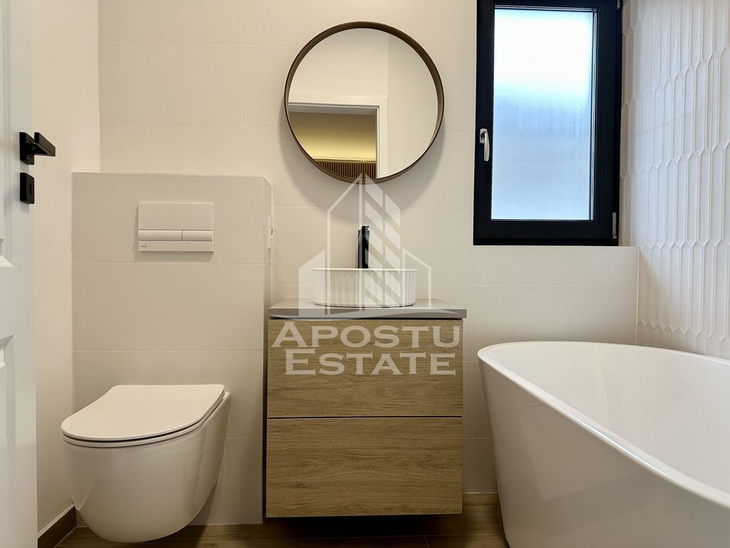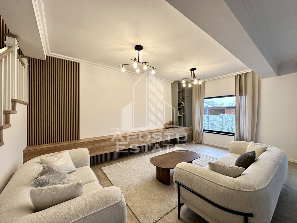 APOSTU ESTATE va propune spre vanzare o jumatate de duplex modern, cu 4 camere, situata in Dumbravita – una dintre cele mai cautate zone rezidentiale, datorita accesului facil la mijloacele de transport in comun si la centrele comerciale. Cu un regim de inaltime P+1E+Pod, aceasta locuinta ofera un spatiu generos si bine compartimentat, avand o suprafata utila de 120 mp si un teren de 320 mp, perfect pentru momentele de relaxare in aer liber. Compartimentare inteligenta si functionala: Parter: Hol primitor Living spatios, cu iesire pe terasa Bucatarie moderna Spatiu de depozitare sub scara Baie eleganta Etaj: Dormitor matrimonial cu baie proprie Doua dormitoare luminoase Dressing generos Hol aerisit Confortul termic este asigurat de centrala termica pe gaz si incalzirea in pardoseala, oferindu-va un ambient placut in orice sezon. Imobilul este racordat la toate utilitatile si se preda la cheie, cu finisaje de calitate incluse in pret! Va oferim consultanta gratuita si solutii financiare personalizate prin colaboratorii nostri! Va asteptam cu drag la vizionare pentru a descoperi noua dumneavoastra locuinta! CP2331797