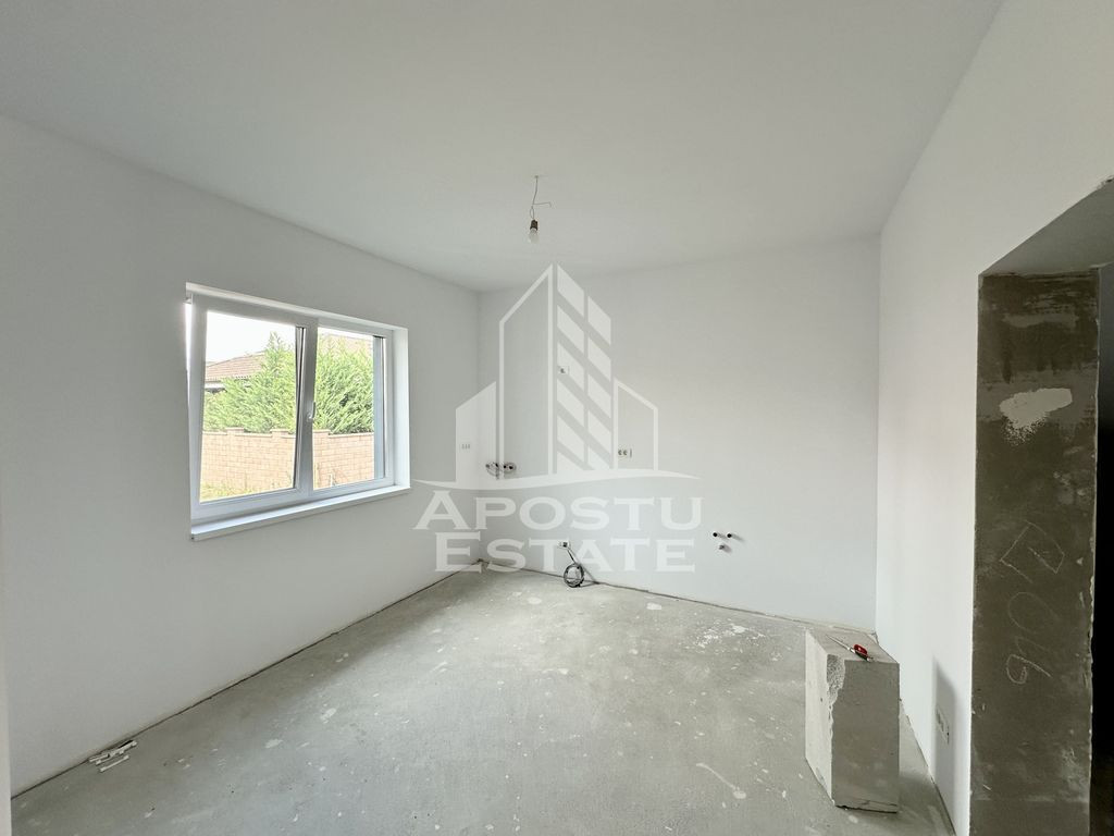 APOSTU ESTATE va propune spre vanzare o jumatate de duplex spatios si elegant, situat intr-o zona linistita si foarte apreciata din Dumbravita – ideala pentru familii sau pentru cei care doresc un plus de confort si intimitate, la doar cateva minute de oras. Constructia este realizata pe un regim de inaltime P+1E, desfasurata pe o suprafata utila de 131 mp, cu un teren generos de 300 mp, ce ofera multiple posibilitati de amenajare a curtii si gradinii. Disponibilitate: Compartimentare functionala si bine gandita: Parter: Hol de acces primitor Living spatios, ideal pentru momente de relaxare Bucatarie semi-inchisa, cu camara pentru depozitare Camera tehnica Birou / Dormitor, perfect pentru lucru de acasa sau oaspeti Baie cu finisaje moderne Terasa perfecta pentru serile de vara Etaj: Dormitor matrimonial cu baie proprie Doua dormitoare secundare, luminoase Baie spatioasa Hol de acces Confortul termic este asigurat de o centrala termica pe gaz, cu incalzire in pardoseala, pentru o temperatura constanta si placuta in orice anotimp. Imobilul se preda la cheie, cu finisaje de calitate superioara, gata sa devina “acasa” pentru noul proprietar. Oferim consultanta imobiliara completa, inclusiv solutii de finantare personalizate, prin partenerii nostri de incredere. Nu ratati ocazia de a locui intr-o casa care imbina armonios spatiul, confortul si linistea! Va asteptam cu drag la vizionare!