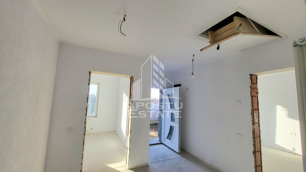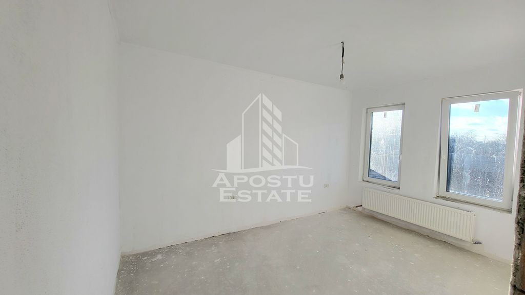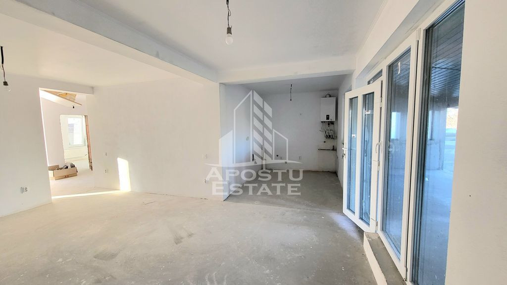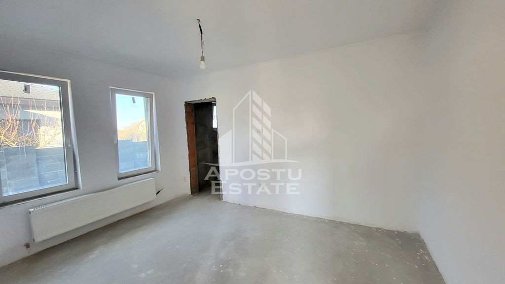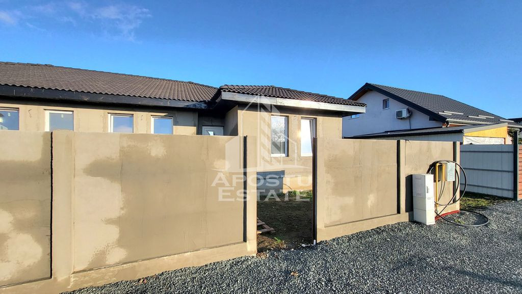 Apostu Estate va propune spre vanzare o jumatate de duplex,cu 4 camere in localitatea Parta. Cu o suprafata utila de 98 mp si o suprafata teren de 371 mp,construit pe parter in anul 2024,dispune de urmatoarea compartimentare: -hol acces. -3 dormitoare decomandate. -bucatarie cu living open space cu iesire pe terasa. -2 bai. -terasa acoperita de 23 mp. -pivnita de 6 mp. -curte pavata si cu spatiu verde de 200 mp. Confortul termic se realizeaza prin intermediul centralei(noua) pe gaz si al caloriferelor. Amplasat intr-o zona linistita de case in mijlocul naturii,la doar 15 minute de Timisoara. Duplexul se preda finalizat, la cheie,astfel aveti posibilitatea sa va alegeti atat finisajele interioare cat si fatada casei,dupa propriile preferinte. Beneficiati de acces auto interior si poarta automatizata. Ideal pt o familie numeroasa,aveti posibilitatea sa achizitionati duplexul intreg! Pretul este pt jumatate de duplex. Oferim consultanta si solutii financiare prin colaboratorii nostri! Va asteptam cu drag la o vizionare!