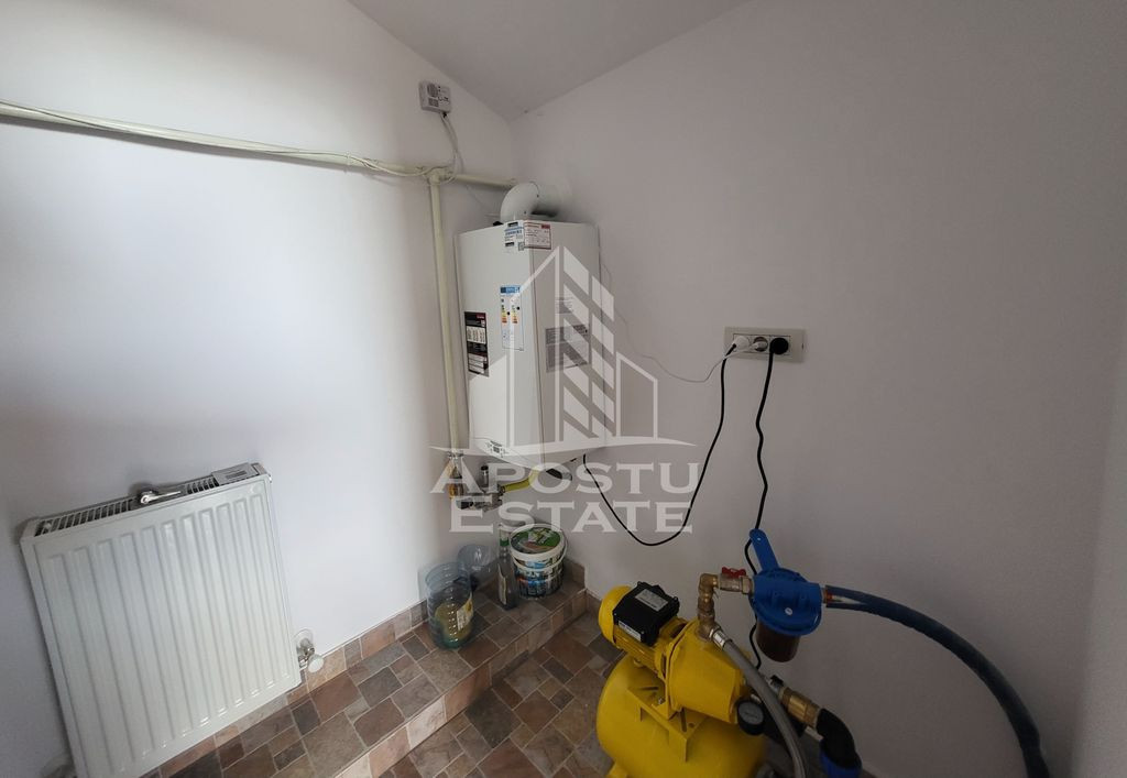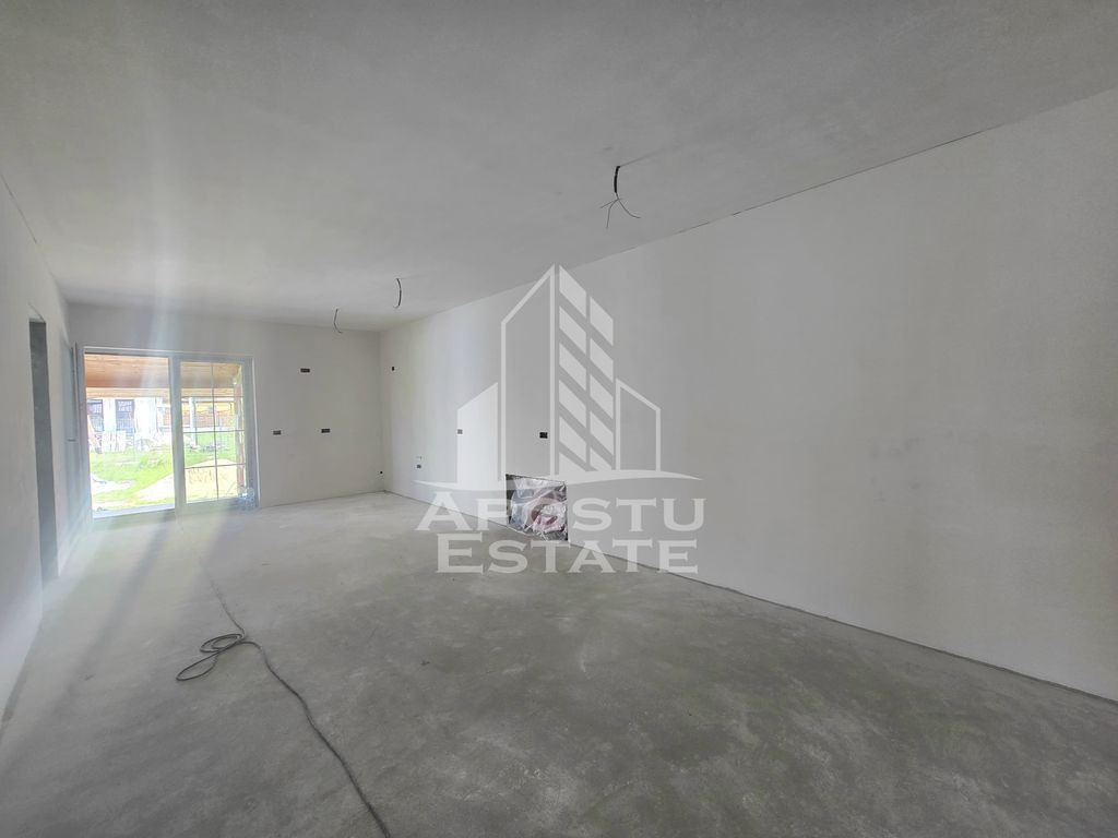 Apostu Estate propune spre vanzare o jumatate de duplex moderna, situata in localitatea Sag, la doar 10 km de Shopping City Timisoara. Proprietatea se afla intr-un cartier nou, aproape de drumul principal, si ofera acces facil la mijloace de transport in comun si magazine alimentare. Fiecare unitate are o suprafata utila de 90 mp si este amplasata pe un teren generos de 320 mp. Locuinta este compartimentata eficient si este ideala pentru o familie care cauta confort si intimitate aproape de oras. Compartimentare: hol de acces, living spatios open space cu bucataria (posibilitate de a inchide bucataria), dormitor, dormitor matrimonial cu baie proprie, baie cu vana, camera tehnica exterioara si terasa acoperita de 15 mp. Constructia este realizata din caramida (20 cm interior, 25 cm exterior), termoizolata cu polistiren de 10 cm. Dotarile includ tamplarie tripan Salamander, usi interioare albe cu toc dublu, pod izolat cu vata minerala, intrerupatoare Gewiss, acoperis din tigla de beton si gard din beton. Exista acces auto in curte. Utilitati disponibile: gaz, curent, apa forata, fosa septica, cu racorduri pregatite pentru apa curenta si canalizare. Imobilul se preda la cheie, complet finisat cu gresie, faianta, parchet si obiecte sanitare incluse. Termen estimat de predare: luna iulie. Oferim consultanta imobiliara si sprijin in obtinerea solutiilor financiare prin partenerii nostri de incredere. Pentru mai multe detalii sau pentru a programa o vizionare, nu ezitati sa ne contactati.