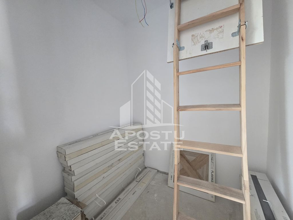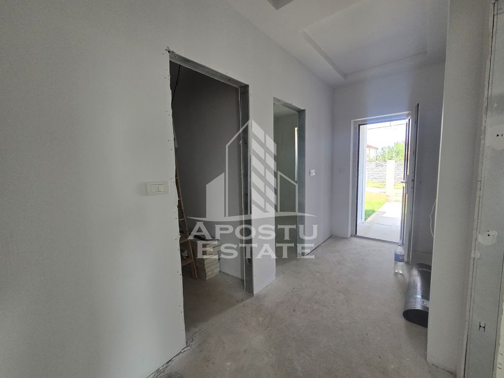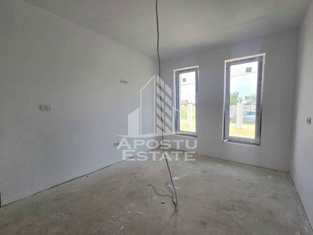 Apostu Estate va ofera spre vanzare un duplex modern cu 3 camere, situat in localitatea Sag, la doar 10 minute de Shopping City Timisoara. Predarea se face la cheie, cu finalizare estimata in luna august 2025. Duplexul are o suprafata utila de 86 mp si o terasa acoperita de aproximativ 20 mp. Suprafata totala a terenului este de 293 mp. Compartimentarea este moderna si eficienta, cu living open space impreuna cu bucataria (bucataria se poate inchide), doua dormitoare spatioase, dintre care unul matrimonial cu baie proprie, o baie de serviciu, camera tehnica, hol de acces, terasa acoperita in spate si debara spatioasa cu acces la pod. Imobilul este construit cu materiale de calitate superioara si finisaje premium. Dispune de: gaz, curent electric, fosa septica (in cateva luni se va putea racorda si la canalizare), centrala pe gaz, incalzire in pardoseala, aer conditionat, prize si intrerupatoare Gewiss. Zidul comun dintre unitati are grosimea de 30 cm si este izolat fonic pentru un confort maxim. Constructie din caramida de 30cm pe exterior. Proprietatea beneficiaza de izolatie cu vata bazaltica de 10 cm, tamplarie Salamander, geamuri tripan, acoperis din tabla, cu asteriala, porti cu deschidere automata, trotuare si acces auto din beton amprentat. Avantajele acestei locuinte includ finisaje moderne atent alese, acces rapid catre oras, zona linistita si siguranta oferita de o constructie solida, ideala pentru familii. Disponibil acum pentru achizitie. Contactati Apostu Estate pentru detalii si vizionare. Oferim consultanta bancara gratuita prin intermediul colaboratorilor nostri.