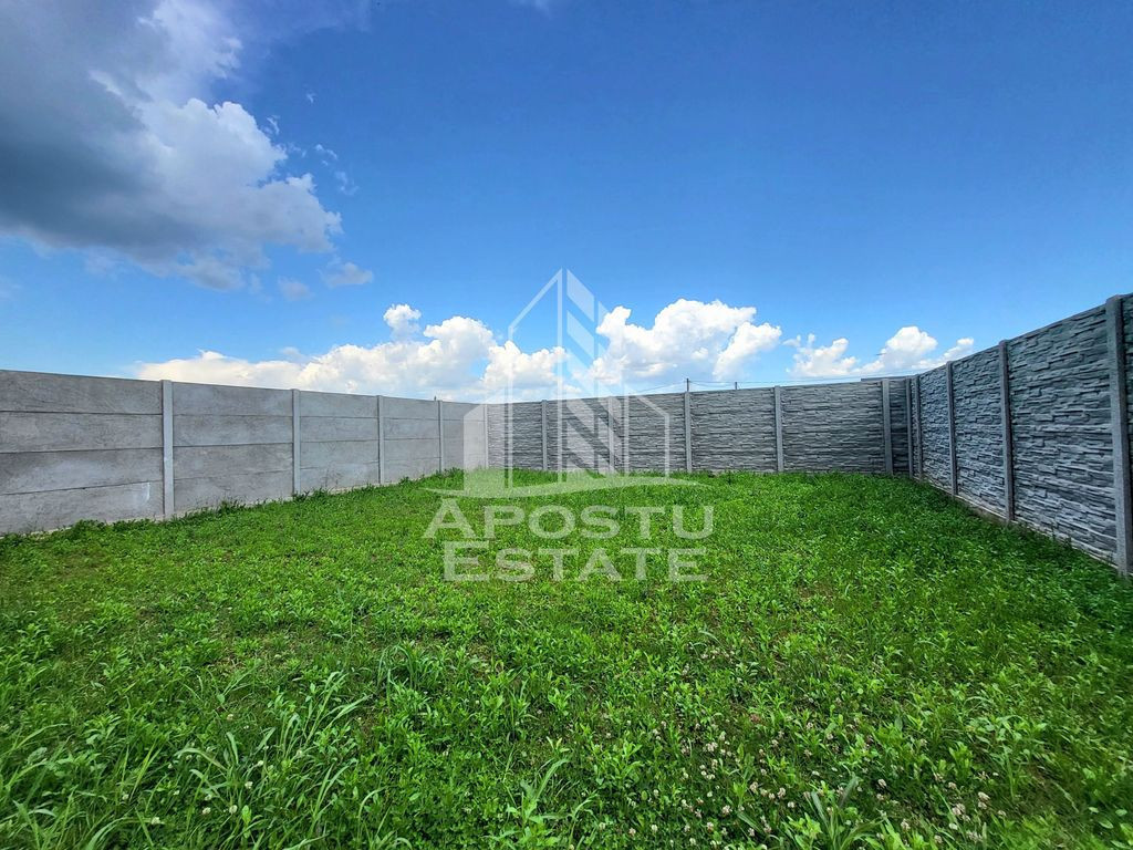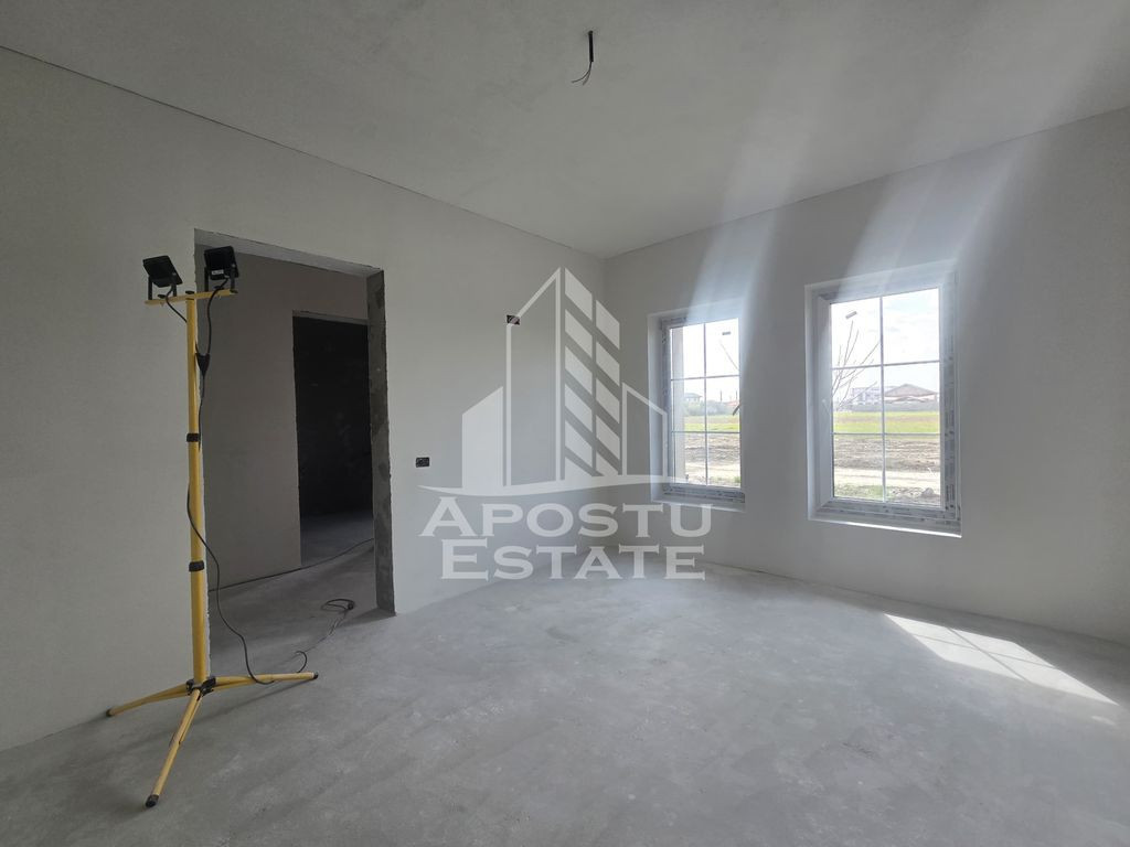 Apostu Estate propune spre vanzare o jumatate de duplex moderna, situata in localitatea Sag, la doar 10 km de Shopping City Timisoara. Proprietatea se afla intr-un cartier nou, aproape de drumul principal, si ofera acces facil la mijloace de transport in comun si magazine alimentare. Fiecare unitate are o suprafata utila de 90 mp si este amplasata pe un teren generos de 320 mp. Locuinta este compartimentata eficient si este ideala pentru o familie care cauta confort si intimitate aproape de oras. Compartimentare: hol de acces, living spatios open space cu bucataria, doua dormitoare, dormitor matrimonial cu baie proprie, baie cu vana, camera tehnica exterioara si terasa acoperita de 15 mp. Constructia este realizata din caramida (20 cm interior, 25 cm exterior), termoizolata cu polistiren de 10 cm. Dotarile includ tamplarie tripan Salamander, usi interioare albe cu toc dublu, pod izolat cu vata minerala, intrerupatoare Gewiss, acoperis din tigla de beton si gard din beton. Exista acces auto in curte. Utilitati disponibile: gaz, curent, apa forata, fosa septica, cu racorduri pregatite pentru apa curenta si canalizare. Imobilul se preda la cheie, complet finisat cu gresie, faianta, parchet si obiecte sanitare incluse. Termen estimat de predare: luna iulie. Oferim consultanta imobiliara si sprijin in obtinerea solutiilor financiare prin partenerii nostri de incredere. Pentru mai multe detalii sau pentru a programa o vizionare, nu ezitati sa ne contactati.
