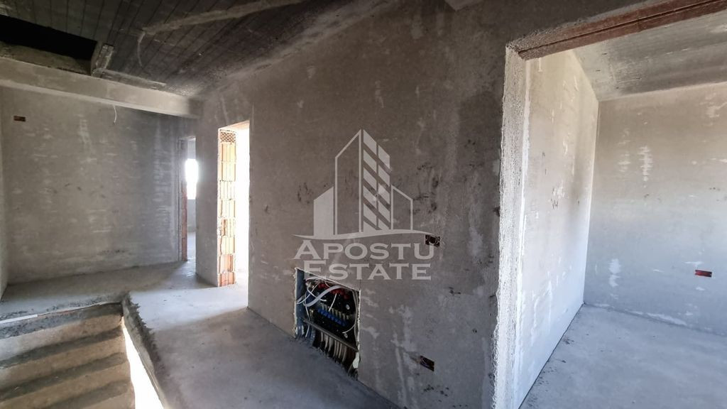 Apostu Estate vă propune spre vânzare jumătate de duplex P+M de 130 mp utili, cu teren de 338 mp, în localitatea Giarmata Vii. Duplexul este construit din cărămidă tip Porotherm, termoizolație exterioară din polistiren de 10 cm grosime EPS 80, placă de beton peste ambele niveluri, zid dublu despărțitor cu izolație de 5 cm grosime, acoperit cu țiglă, geamuri din tâmplărie premium cu sticlă tripan 4 anotimpuri. Duplexul este compartimentat astfel: La parter se află holul cu acces în toate camerele, living open-space cu bucătărie (dar bucătăria se poate închide), cameră dormitor/birou, baie, terasă cu cameră tehnică. La etaj se află holul cu acces în toate camerele, dormitor matrimonial cu dressing și baie, 2 dormitoare și baie. Utilități: apă curentă, canalizare, gaz, fibră optică. Drum: pietruit; casa se află la o distanță de 100 m față de drumul asfaltat. Casa se predă la cheie, cu finisaje de înaltă calitate. Oferim consultanță și soluții financiare prin intermediul colaboratorilor noștri pentru a obține cel mai potrivit tip de credit. Vă așteptăm cu drag la vizionare! ID intern: CP2797052