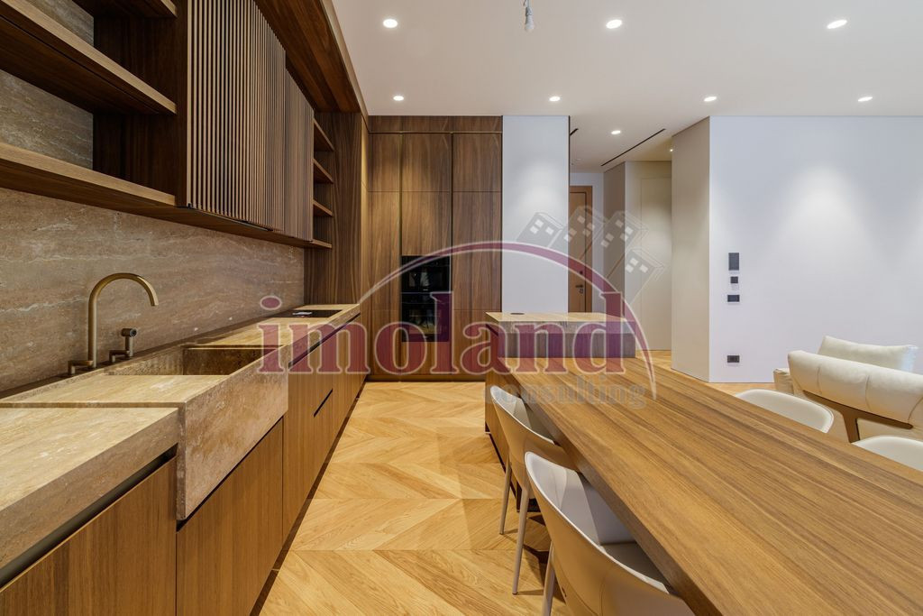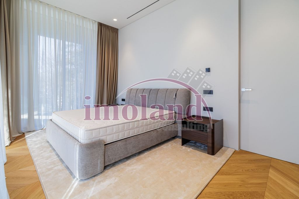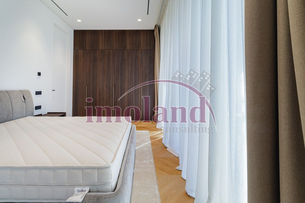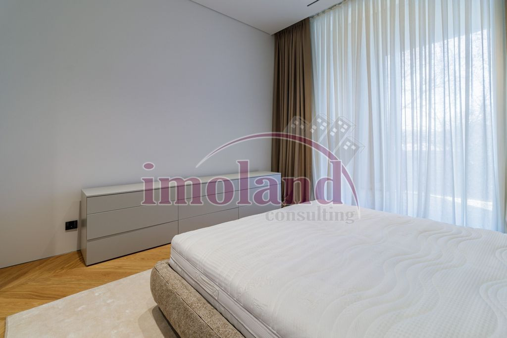 Kiseleff 16 este la momentul actual cel mai exclusivist condominiu de pe piața imobiliară din București, fiind un epitom al calitatii, maiestriei si rafinamentului arhitectonic, unica cladire landmark din capitala. Amplasat in zona Kiseleff, pe o strada privata cu acces limitat, imobilul S+P+2+3R, finalizat in 2021 are doar 13 apartamente si poarta semnatura marelui arhitect, Daniel Ciocazanu. Apartamentul propus la inchiriere este situat la etajul al doilea si masoara 220 mp suprafata construita, din care 137 mp suprafata utila, la care se adauga terasa de 56mp ce inconjoara proprietatea. Compartimentare interioara: hol amplu cu acces catre livingul spectaculos unit cu zona de dining si bucatarie tip insula, grup sanitar de serviciu, doua dormitoare, deservite fiecare de propria baie si spatiu pentru dressing. Proprietatea se remarca prin inaltimea tavanului de 3.8m, incalzire prin pardoseala, spatii vitrate spectaculoase care scalda in lumina naturala toate incaperile, finisaje exclusiviste, dotari de elita si obiecte sanitare Antoniolupi, Gessi, usi Mandelli si Barausse, mobilier Natuzzi Italia. Cladirea beneficiaza de receptie permanenta, de supraveghere video, sistem de recunoastere faciala la intrarea in fiecare apartament, iar in plus, estetica spatiilor comune este una desavarsita, operele de arta fiind parte simbiotica a acestui imobil unic in Romania. Fatada este imbracata cu travertin si aluminiu adonizat, totul integrat intr-un perete compact de arbusti ornamentali inalti, accentuand conceptul de simbioza. Pretul chiriei include 2 locuri de parcare in subsolul imobilului. O proprietate de un rafinament desavarsit, perfecta pentru cei care cauta o enclava a luxului in centrul capitalei. 8000eur + TVA