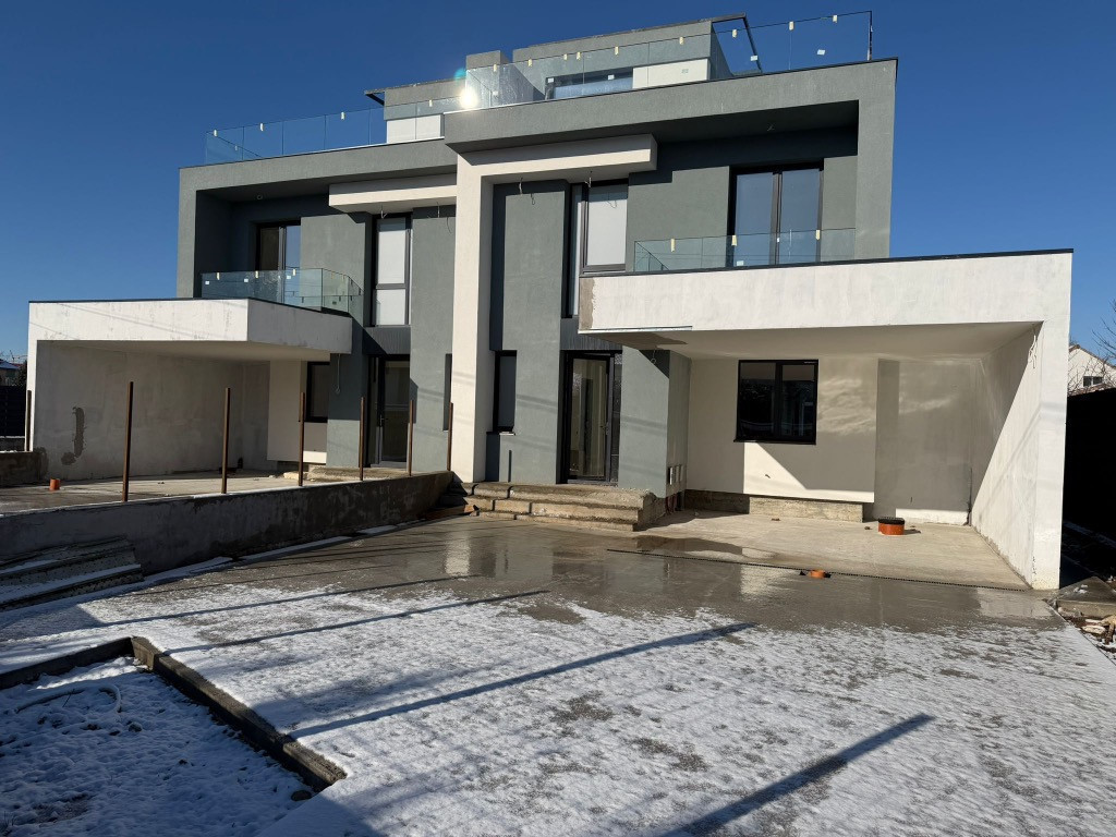 Otopeni Villas este un proiect rezidențial de lux situat pe Strada Oașului 54, Otopeni, la doar 450 de metri de viitoarea stație de metrou M6 - Bruxelles. Cele 6 case eficiente energetic oferă familiilor un cămin confortabil, fiind dotate cu tehnologii smart și pompe de căldură care folosesc energia regenerabilă a pământului, asigurând costuri reduse cu încălzirea. Zona este bine conectată la toate punctele de interes ale orașului, inclusiv malluri, aeroport și parcuri de distracții. Alege una din cele 6 vile de lux și te vei simți ca în vacanță în fiecare zi. Vile premium P+1 str. Oasului nr. 54, la 450 m de Metrou 6 - Statia Bruxelles. Vila nr.1 S. utila interior - 111.62 mp + terasa parter 22 mp + terasa rooftop - 60 mp = 193.62 mp Teren 212 mp, teren liber = 144.80 mp