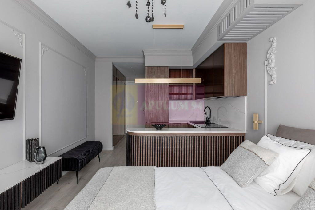 Agentia Apulum 94 are placerea sa va prezinet un superb studio situat in Win Herastrau, un ansamblu de referinta din zona Soseaua Nordului – Herastrau. Designul studioului a fost gandit si realizat impreuna cu un designer, un articol care prezinta acest proiect a aparut in revista Lifestyle Design Interior (RIDA), editia din 2024. Studioul este situat la parterul inalt al unei cladiri din Win, avand vederea spre curtea interioara. Acesta a fost gandit ca o camera de hotel de 5 stele, fiecare detaliu fiind atent ales pentru a oferi confort. Toate materialele folosite, precum si electrocasnicele si obiectele de decor sunt premium. Apartamentul (exact cum e in fotografii) are pretul de 148.000 euro.