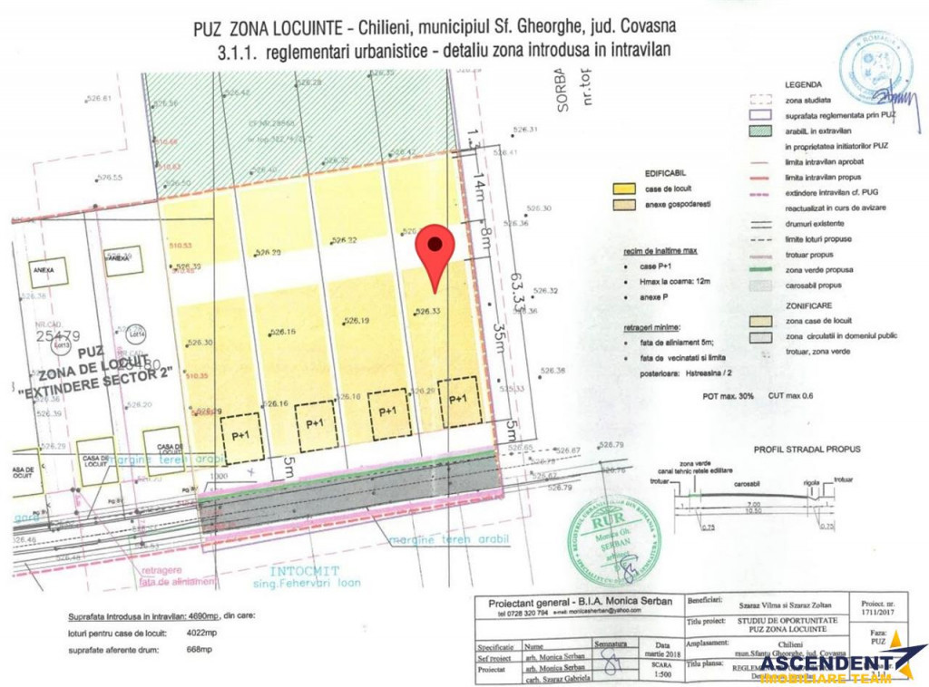 Comision cumparator 0% Ascendent Imobiliare Covasna propune spre vanzare un teren mixt, ingradit si construibil in Chilieni, situate intr-o zona linistita, aproape de natura, la cateva minute de Sfantu Gheorghe. Ideale pentru: - Investitie - Construirea propriei locuinte - Cei care isi doresc liniste si aer curat - Investitori interesati de o zona in dezvoltare Teren: total 2.498 Msup2; - 1.057 Msup2; intravilan - 1.441 Msup2; extravilan - 16 M front stradal Procent de Ocupare a Terenului (POT): 30% Coeficient de Utilizare a Terenului (CUT): 0.6 Regim maxim de inaltime P 1 Video prezentare: https://www.youtube.com/watch?v=8M32w8j7qls Google Maps: https://maps.app.goo.gl/cSRyS9SFajVo8puN8 Utilitati: Reteaua de apa si current electric se regasesc pe teren. Daca apreciati linistea, natura si totodata proximitatea orasului, aceste terenuri reprezinta o oportunitate excelenta. Nu rata aceasta oportunitate! Contacteaza-ne acum pentru detalii ai vizionare! Consilier dedicat alesei oferte: Bicsak Laacute;szloacute;, Telefon -Whatsapp: 0752 883 104 Detalii, fotografii suplimentare si alte variante exclusive : www.ascendentimobiliare.ro