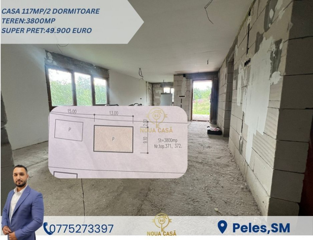 Vă ofer spre vânzare o proprietate cu un teren generos de 3800MP si o casa in suprafata constuita de 118MP situata in comuna Lazuri in satul Peles (la 5km de Lazuri) Casa este compusa din hol,2 camere,baie, living cu bucatarie open space si terasa Utilitatii: apa si curent Casa a fost constuita in anul 2023 si se vinde la stadiul regasit in poze. Pret vanzare:49.900 Euro /Comision 0% ! Pentru alte detalii va rog sa mă contactați telefonic 0775273397 David Zima