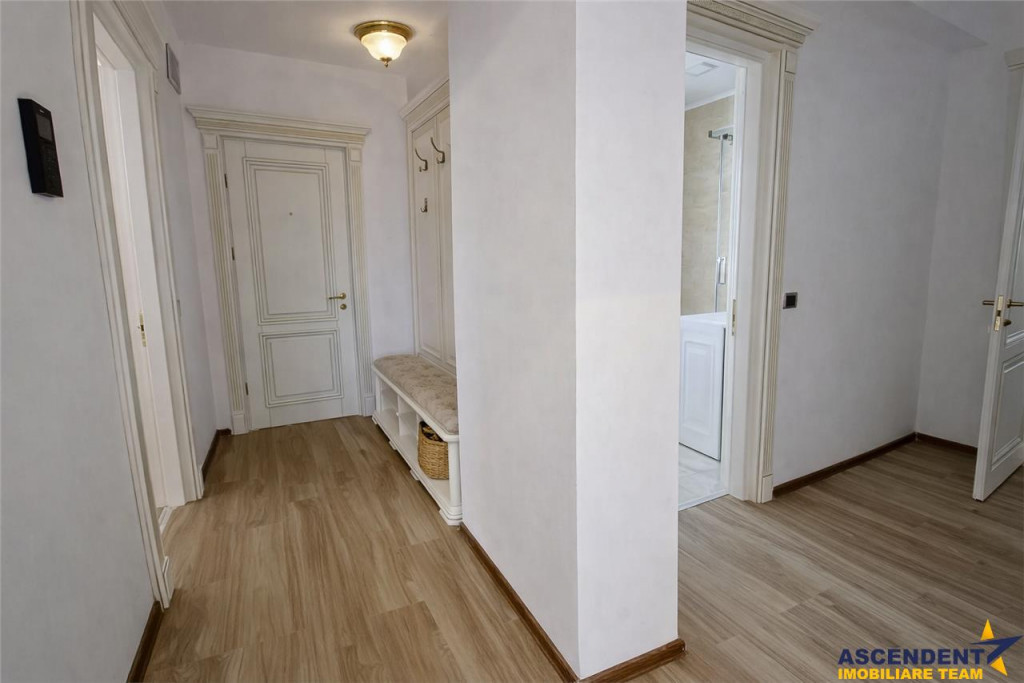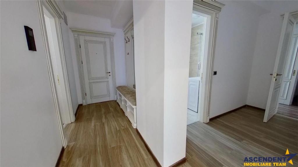 Comision chirias: 50% din contravaloarea unei chirii lunare, o singura data.. ASCENDENT IMOBILIARE propune spre Inchiriere, o oportunitate deosebita oferita de un concept nou, marca Isaran, in apropierea Coresi Mall Brasov. Complexul rezidential Isaran dispune de spatii de joaca pentru copii, spatii verzi amenajate, parcari private subterane, cate 2 lifturi Schindler pe fiecare imobil, video-interfon, etc. Pentru confortul dumneavoastra va invitam sa faceti o prima vizionare, din locatia unde va aflati, chiar acum, prin accesarea turului virtual pe care vi l- am pregatit, cu drag: EXPLOREAZA VIRTUAL: https://my.matterport.com/show/?m=vJWVEPJzkaT Proprietatea, mobilata si utilata, noua la cheie, cu patru camere, constructie 2021, se desfasoara pe un singur nivel, pozitionata la parter inalt, pe urmatoarea configuratie decomandata: living spatios open space cu bucataria, cu zona de dining si iesire pe o terasa de 10 metri, 2 holuri, dormitor pentru oaspeti sau birou, baie cu dus spatioasa de oaspeti, dormitor si un dormitor matrimonial cu dresing mobilat si baie proprie cu cada. Oferta se evidentiaza atat prin generozitatea suprafetei utile 106 mp si terasa de 10 mp, cat si prin calitatea materialelor folosite, mobilier si usi integral din lemn masiv, blat bucatarie din marmura, piatra naturala, geam termopan triplu, centrala termica Viessmann, cat si prin pozitionare excelenta, la drum asfaltat in imediata apropiere a statiilor de transport in comun. Rezidenta dispune de toate utilitatile, respectiv: apa, curent, gaz, canalizare, centrala termica cu un randament foarte bun si cu infrastructura apreciabila, fiind amplasata in cel mai nou cartier al Brasovului in imediata vecinatate a punctelor de interes, cotidian, precum: transport public, centura ocolitoare, Coresi Mall, Complex fitness-spa Belaqva, scoala, gradinita, centru universitar, patinoar olimpic, etc. Oferta reprezinta atat o foarte buna oportunitate investitionala dar si o optiune rezidentiala pentru cei ce isi doresc confortul unei zone rezidentiale noi, amenajate cu parcuri, zone de agrement, iluminat public si confortul parcarii subterane. Certificat Energetic proprietate: Cladire certificata clasa A cu un consum anual specific de energie [KWh/msup2;an] 127.16 Indice de emisii echivalent CO2 [KgCO2/msup2;an] 26.98 Consum anual specific de energie din surse regenerabile [kWh/msup2;an] 0 Desigur ca avantajele si detaliile proprietatii invita sa fie cunoscute in detaliu! Consilier specializat pe aleasa oferta: domnul Florin Tonu Telefon: 0721 218 273 Detalii, fotografii suplimentare si alte variante similare exclusive va invitam sa accesati pe site -ul ascendent.