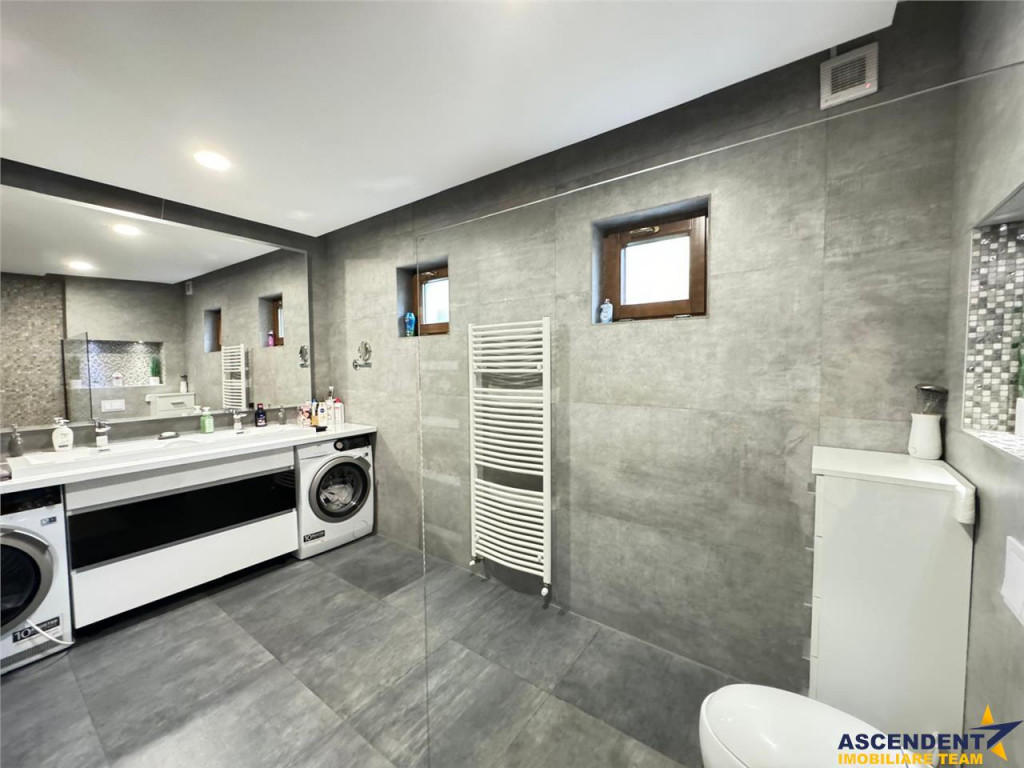 Comision cumparator:0% ASCENDENT IMOBILIARE TARGU MURES va propune: Vila de Lux cu Arhitectura Moderna, Confort si Securitate de Top Descoperiti aceasta superba vila cu arhitectura moderna, finalizata in 2019, ce ofera o locuinta ideala pentru cei care apreciaza eleganta, confortul si siguranta. Situata pe un teren generos de 16,2 arii, aceasta proprietate se remarca prin finisajele premium si dotarile de top. Va invitam sa experimentati o vizionare initiala, din locatia unde va aflati, chiar acum, prin accesarea turului virtual/ si a filmului de prezentare: Tur virtual tridimensional: https://my.matterport.com/show/?m=RopYL4g4Jrt Film prezentare: https://www.youtube.com/watch?v=M9xOiMw995Q Detalii Tehnice si Structurale: Suprafata utila: 193 mp | Desfasurata: 360 mp; Constructie solida, cu fundatie din beton, zidarie Porotherm si izolatie termica superioara; Acoperis durabil din tigla Bramac; Instalatie electrica premium, cu cablaj separat pe fiecare nivel; Geamuri termopan de calitate germana. Interior de Lux si Functionalitate: Parter: Hol primitor cu dulap incorporat; Bucatarie open space, complet echipata cu aparatura AEG: cuptor incorporat, plita cu inductie, cuptor cu microunde, hota tip insula, frigider LG Side by Side; Living spatios tip loft, cu semineu modern si incalzire in pardoseala de ultima generatie; Dormitor generos si un dressing complet utilat; Baie moderna, complet echipata, cu dus walk-in. Mansarda: 3 dormitoare mobilate cu gust; Baie moderna cu cada si oglinda smart; Acces la terasa de 50 mp cu gazon artificial din doua dormitoare si balcon de 7 mp din al treilea dormitor. Spatii Exterioare Amenajate: Terasa de 100 mp la nivelul solului; Curte pavata cu piatra naturala, iluminata ambiental; Garaj dublu automatizat, cu rigole de scurgere si spatiu de depozitare suplimentar; Pivnita cu usa culisanta; Doua terase suplimentare de 70 mp, amplasate deasupra garajului si depozitului; Fantana cu hidrofor; Foisor acoperit cu tigla Bramac, inconjurat de plante ornamentale, tuia si pomi fructiferi; Aleile din jurul casei pavate cu granit; Teren complet imprejmuit cu gard si terasat pe 4 nivele. Confort si Securitate de Varf: Confort termic asigurat de centrala Vaillant, incalzire in pardoseala si semineu modern; la mansarda sunt disponibile calorifere; Sistem de securitate avansat: alarma BSG, camere de supraveghere, senzori de miscare in fiecare incapere; Cablu TV si internet de mare viteza; Iluminare LED interior-exterior, cu lumini ambientale; Mobilier MDF personalizat, de inalta calitate. Aceasta vila reprezinta combinatia perfecta intre design modern, functionalitate si siguranta, fiind alegerea ideala pentru o familie care isi doreste un camin deosebit, in care luxul si confortul sunt la ele acasa. Nu ratati oportunitatea de a deveni proprietarul acestei bijuterii imobiliare! Invitam colegii la colaborare, onoram agentul/ agentia partenera cu comisionul aferent! Detalii, fotografii suplimentare, precum si alte variante similare exclusive: www.ascendentimobiliare.ro