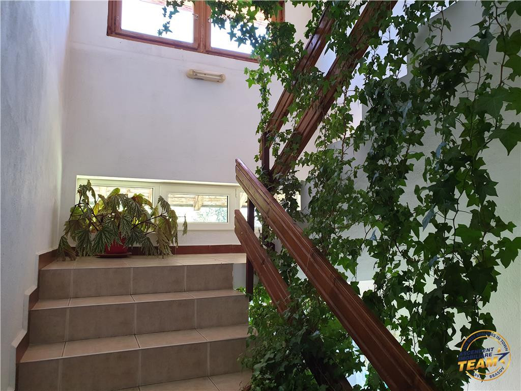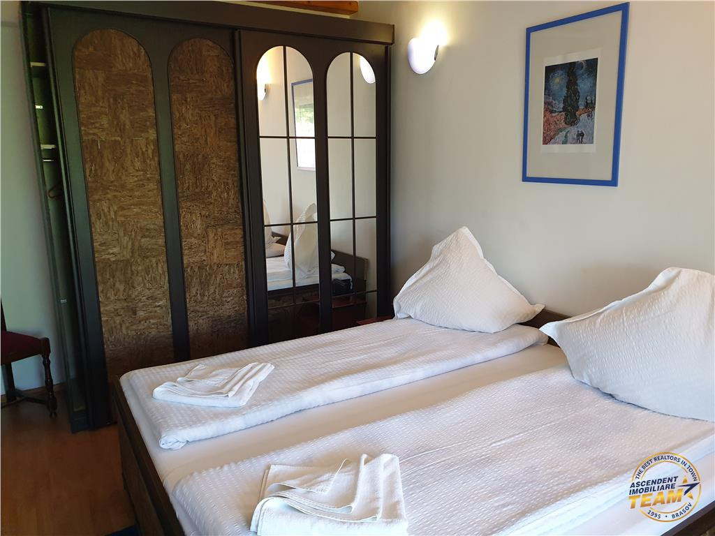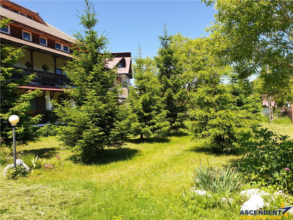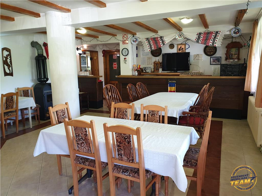 Comision cumparator: 2% TVA din contravaloarea sumei de tranzactionare. ASCENDENT IMOBILIARE propune spre vanzare o pensiune intr-o zona de basm, Fundata, Brasov. Proprietatea se desfasoara pe o suprafata de 2350 mp cu front stradal de 56 mp, inconjurata cu gard de lemn, sistem de iluminare propriu si parcare pentru 16 autovehicule. Imobilul se prezinta pe o compozitie personalizata, pe o suprafata de 970 mp si se desfasoara pe cinci nivele, respectiv: subsol, parter, etaj 1, etajul 2 si mansarda. La Subsol, pe o suprafata de 100 mp se regasesc: o sala de jocuri, centrala termica si depozitul de alimente. La Parter, pe o suprafata de 285 mp ne intampina salonul pentru servirea mesei, grup sanitar, bucataria specifica pensiunii utilata si mobilata, grup sanitar cu dus si vestiar pentru personal, un dormitor cu grup sanitar propriu, un apartament cu 2 dormitoare, hol si grup sanitar, o terasa de 46 de mp si un balcon de 13 mp. Accesul la proprietate se face pe scara principala din fata si o intrare separata in spate pentru personalul auxiliar. Etajul 1 detine pe o suprafata de 285 de mp, 8 camere cu bai proprii si mobilier din lemn masiv de inalta calitate, o terasa de 46 mp in partea din fata si un balcon de 25 mp in partea din spate. La etajul 2, pe o suprafata de 218 mp se pot amenaja 8 camere duble cu bai proprii, fiind compartimentate si cu utilitati. La mansarda se poate amenaja o sala de conferinte de 77 mp sau orice alta activitate. Constructia a fost ridicata in anul 2011 cu materiale de cea mai buna calitate, beton armat si caramida la subsol, parter si etajul 1 si din lemn etajul 2 si mansarda. Pensiunea este acoperita cu tigla si detine toate utilitatile: curent electric, 380V, retea de apa potabila, canalizare, incalzire pe lemne sau GPL (in curs de racordare la reteaua de gaz). De asemenea, anexele sunt construite din lemn si pardoseala betonata: garaj, atelier, foisor si magazie de lemne. Completeaza oferta zonarea cu priveliste deosebita la Muntii Bucegi in fata si Muntii Piatra Craiului in spate, curtea amenajata cu flori, gazon, bradutii si posibilitatea extinderii proprietatii in vecinatate. Cu o rata foarte buna pe site-urile de specialitate, pensiunea reprezinta o buna oportunitate pentru investitie, fiind foarte aproape de punctele de mare interes turistic: Castelul Bran, Cheile Gradistei, Plaiul Foii, Cheile Zarnestiului si ofera o multitudine de actitvitati cu specific montan. Consilier dedicat acestei oferte: domnul Florin Tonu 0739533805 Detalii si fotografii suplimentare si alte variante similiare exclusive: www.ascendentimobiliare.ro