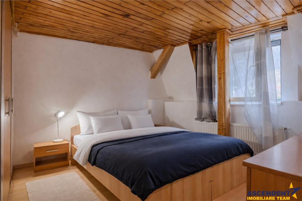 Comision cumparator: 2% tva, din valoarea de tranzactionare. ASCENDENT IMOBILIARE este onorata sa va propuna spre vanzare, in EXCLUSIVITATE un apartament de 4 camere, compozitie pe doua niveluri, situat pe strada Constantin Brancoveanu, una dintre cele mai vechi si valoroase artere ale Centrului Istoric. Strada poarta numele unui domnitor roman cunoscut pentru curaj si viziune si face legatura intre Poarta Schei si Strada Sforii, intr-o zona incarcata de farmec si istorie. Va invitam sa experimentati o vizionare initiala, din locatia unde va aflati, chiar acum, prin accesarea turului virtual si a filmului de prezentare: Tur virtual tridimensional: https://my.matterport.com/show/?m=tDRZUNFfejZ Film prezentare: https://www.youtube.com/watch?v=t-IN-EuWTgE Edificiul dateaza din anul 1960 si gazduieste un numar restrans de apartamente. Situat la etajul intai si mansarda, acest spatiu de aproximativ 100 mp utili ofera un stil de viata echilibrat si confortabil. Compartimentarea moderna include un living deschis cu bucataria, trei dormitoare luminoase, doua bai functionale si o terasa spatioasa, perfecta pentru momente de relaxare. Unitatea locativa beneficiaza de acces la curtea comuna si dispune de garaj, asigurand atat intimitate, cat si utilitate in viata de zi cu zi. Zidurile groase si linistea zonei ofera o senzatie autentica de stabilitate si confort. O alegere recomandata pentru cei care cauta valoare autentica, potential turistic sau o locuinta cu farmec traditional in Centrul Istoric al Brasovului. Consilieri dedicati acestei oferte: domnul Marius Pop Telefon/WhatsApp:0770154569 si domnul Silviu Basturea Telefon/ WhatsApp: 0723984811 Detalii, fotografii suplimentare, precum si alte variante similare exclusive: www.ascendentimobiliare.ro