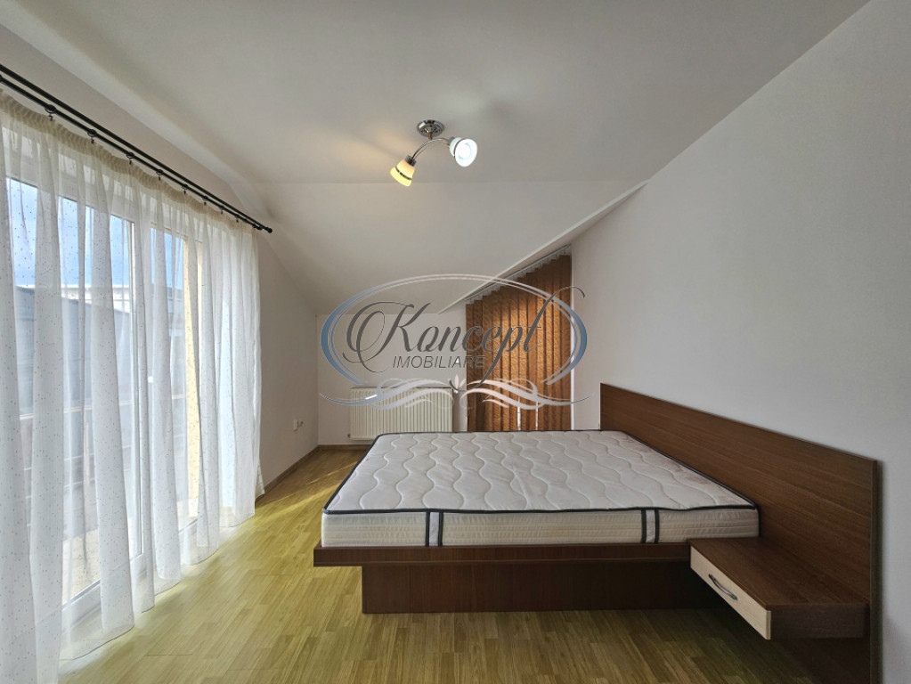 Koncept Imobiliare va ofera spre inchiriere un duplex spatios, situat in cartierul Someseni, in apropiere de TRC Park Transilvania, pe o strada infundata, ferita de trafic, oferind liniste si intimitate. Accesul la strada principala este facil, iar transportul public este usor accesibil. Zona combina confortul urban cu un ambient placut, avand in vecinatate case si centrul comercial Ambient. Casa este dispusa pe doua niveluri, cu intrari separate din exterior, si beneficiaza de un teren de 250 mp. Parterul include hol, doua camere, bucatarie complet utilata, baie si debara, iar etajul ofera casa scarii, hol, trei camere, un dressing, bucatarie, baie si doua balcoane cu suprafata totala de aproximativ 8 mp. Orientarea Est-Vest asigura lumina naturala pe parcursul intregii zile. Finisajele sunt intr-o stare excelenta, cu parchet, gresie, faianta si tamplarie PVC, iar centrala termica proprie asigura confortul termic. Podul ofera spatiu suplimentar pentru depozitare, iar in exterior exista multiple locuri de parcare. Proprietatea se preteaza atat pentru o familie, cat si pentru doua familii care doresc separarea naturala a parterului fata de etaj, putandu-se folosi practic ca doua apartamente distincte. De asemenea, poate fi folosita ca spatiu pentru birou sau activitate profesionala, oferind flexibilitate in functie de necesitati. Imobilul este disponibil imediat, fiind complet mobilat si utilat si reimprospatat dupa vechii chiriasi. Printre punctele forte se numara amplasamentul retras, linistit, apropierea de centre comerciale si transport, spatiile generoase si compartimentarea inteligenta, posibilitatea de utilizare ca doua unitati distincte si confortul garantat de finisaje de calitate si incalzire proprie. Pentru informatii suplimentare, programarea unei vizionari sau pentru a afla oferta noastra completa va stam la dispozitie telefonic, prin e-mail sau la sediul agentiei noastre, pe str. Aviator Badescu, nr. 19, Cluj-Napoca. Id intern: P21229