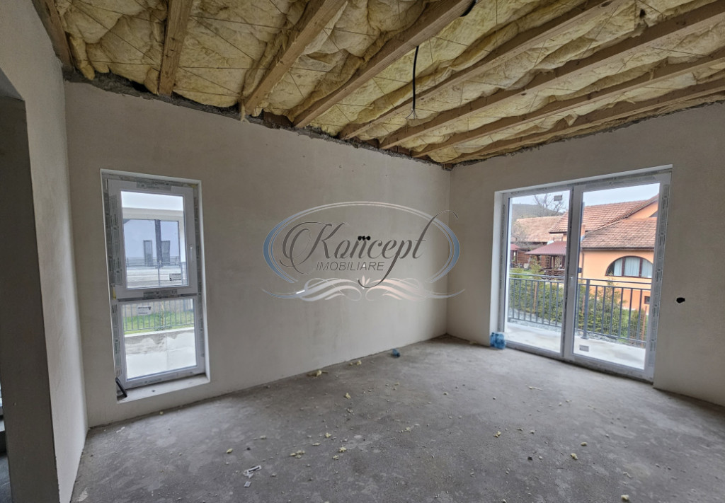Koncept Imobiliare va ofera spre vanzare o casa individuala situata in satul Tauti, comuna Floresti, intr-o zona linistita, verde si retrasa de la agitatia cotidiana, cu acces rapid catre Floresti si catre Cluj-Napoca. Amplasata intr-un ansamblu intim, format din doar 4 unitati locative, proprietatea beneficiaza de o orientare nord-est si de o priveliste placuta spre padure, oferind un plus de intimitate si confort. Casa este noua, finalizata in anul 2025, are regim de inaltime P+1+pod si o suprafata utila de 120 mp, completata de un teren de aproximativ 300 mp, din care circa 200 mp reprezinta curte libera. La parter regasim un living spatios si luminos, o bucatarie generoasa, un hol aerisit, o baie si o terasa de aproximativ 20 mp, ideala pentru relaxare in aer liber. Etajul este bine impartit, cu trei dormitoare, dintre care dormitorul matrimonial dispune de baie proprie, plus o baie suplimentara si doua balcoane totalizand 10 mp. Podul inalt ofera un spatiu amplu pentru depozitare, reprezentand un avantaj important pentru organizarea locuintei. Constructia este solida, realizata pe structura de beton si caramida, izolata cu polistiren de 15 cm, tamplarie Salamander GreenEvolution 76 cu trei foi de sticla, invelitoare din tabla faltuita Bilka si o fatada moderna placata cu caramida aparenta importata din Belgia. Interiorul se preda semifinisat, cu pereti gletuiti, sapa si instalatii trase pe pozitii. Incalzirea este realizata prin pardoseala pe ambele niveluri, alimentata de o centrala termica proprie pe gaz. Utilitatile sunt complete: gaz, curent, canalizare si bazin pentru colectarea apelor pluviale, util pentru irigarea spatiilor verzi. Curtea este amenajata cu gazon natural, acces pietonal si auto pavate, imprejmuire completa cu gard metalic si locuri de parcare dedicate. Accesul se face pe drum asfaltat pana la ansamblu, iar drumul privat este pietruit. Aceasta proprietate se potriveste excelent pentru o familie care isi doreste un stil de viata echilibrat, aproape de natura, intr-o casa eficient construita, bine compartimentata si imediat disponibila. Este ideala pentru cei care lucreaza in Cluj-Napoca, dar cauta confortul si intimitatea unei zone retrase si verzi. Pentru informatii suplimentare, programarea unei vizionari sau pentru a afla oferta noastra completa va stam la dispozitie telefonic, prin e-mail sau la sediul agentiei noastre, pe str. Aviator Badescu, nr. 19, Cluj-Napoca. Id intern: P21003
