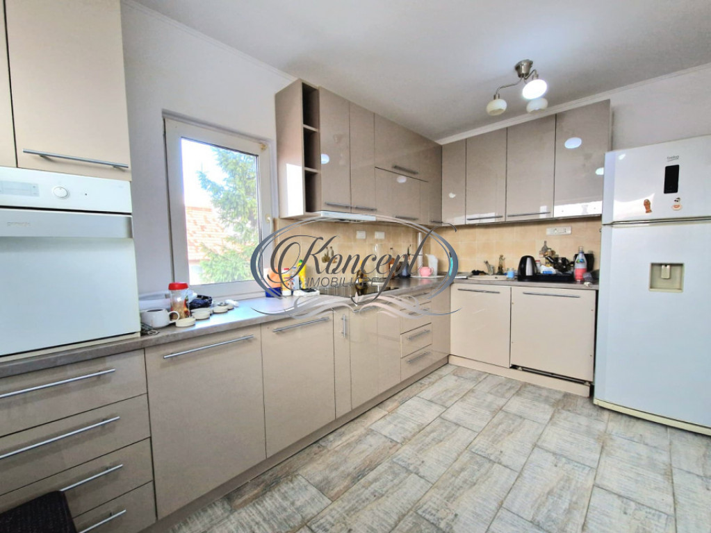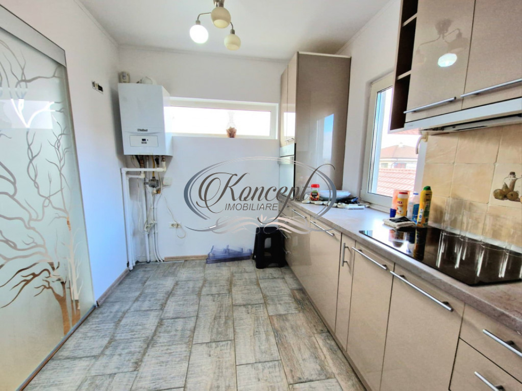 Koncept Imobiliare va ofera spre inchiriere un apartament la casa situat in cartierul Someseni din Cluj-Napoca, amplasat la etajul 1 al unei proprietati bine intretinute, cu acces rapid catre zona IRA, Leroy Merlin, Lidl si Kaufland, precum si catre principalele rute spre centrul orasului, la aproximativ 25 de minute cu masina sau transportul in comun. Locatia ofera un cadru linistit, cu expunere est-sud-vest si acces facil la utilitatile urbane, fiind potrivita pentru cei care cauta confort si proximitate fata de puncte de interes. Apartamentul dispune de o suprafata generoasa de aproximativ 100 mp, fiind compartimentat optim in doua dormitoare luminoase, un living cu dining, o bucatarie inchisa complet utilata, o baie spatioasa, spatii de depozitare si o terasa de 12 mp orientata spre curtea interioara. Proprietatea beneficiaza de acces la curtea comuna, oferind un plus de spatiu exterior si o atmosfera placuta pentru relaxare. Imobilul este izolat termic la exterior si echipat cu centrala proprie si incalzire prin calorifere, asigurand eficienta si confort pe tot parcursul anului. Locurile de parcare sunt disponibile pe drumul cu servitute din fata casei. Finisajele moderne, mobilierul nou si bine intretinut, precum si dotarile complete ale bucatariei – plita, cuptor, frigider, hota si masina de spalat vase – contureaza o locuinta functionala si gata de mutare. Compartimentarea practica, luminozitatea naturala datorata orientarii multiple, terasa cu vedere spre curtea interioara si linistea specifica zonei de case reprezinta avantajele esentiale care diferentiaza aceasta oferta. Accesul printr-un hol tip casa scarii asigura un grad placut de intimitate, iar curtea generoasa amplifica senzatia de spatiu si confort. Sunt permise animalele de companie, ceea ce face proprietatea potrivita si pentru chiriasi care isi doresc flexibilitate si libertate in acest sens. Apartamentul se preteaza excelent pentru un cuplu, o familie, personal din zona Someseni sau aeroport, precum si pentru expati care isi doresc un mediu linistit, bine conectat, cu un stil de viata echilibrat intre confort si accesibilitate urbana. Pentru informatii suplimentare, programarea unei vizionari sau pentru a afla oferta noastra completa va stam la dispozitie telefonic, prin e-mail sau la sediul agentiei noastre, pe str. Aviator Badescu, nr. 19, Cluj-Napoca. Id intern: P21013