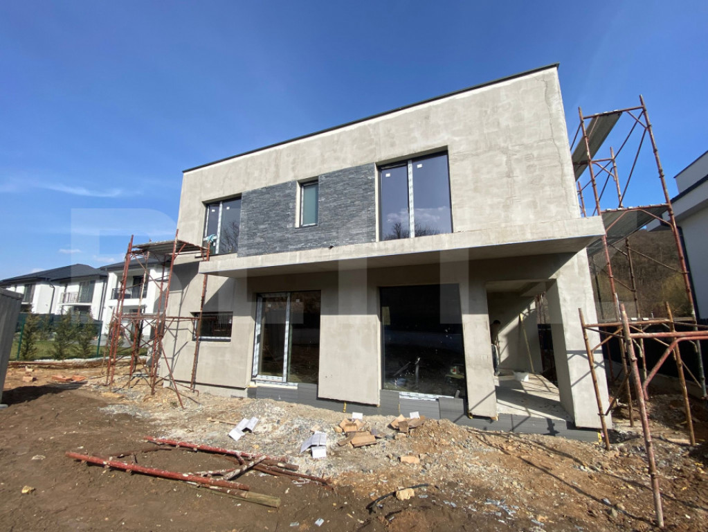Blitz vă propune spre vânzare o casă modernă, tip P+E, amplasată într-o zonă liniștită, în mijlocul naturii, dar totodată foarte aproape de oraș. Casa are o suprafață utilă de 140 mp, la care se adaugă un garaj de 22 mp integrat în construcție, amplasată pe un teren de 600 mp ce permite amenajarea unei grădini, terase sau a unui spațiu de relaxare. Compartimentare: -Parter: living spațios, bucătărie separată, cameră multifuncțională (birou/dormitor/hobby room), baie, hol și debara. -Etaj: 3 dormitoare, fiecare cu baie proprie, 2 dressinguri, hol și 2 terase ideale pentru relaxare. BONUS: Deasupra garajului se va amenaja o terasă spațioasă, cu acces printr-o scară exterioară, perfectă pentru petrecerea timpului în aer liber și admirarea priveliștii. Stadiu și dotări: -Se predă semifinisată -Încălzire în pardoseală pe ambele niveluri -Instalații electrice și sanitare trase pe poziții -Tâmplărie tripan cu 7 camere, pentru izolare termică și fonică superioară -Ușă de intrare montată -Izolație exterioară cu polistiren de 15 cm, densitate 100 -Hidroizolație la fundație, pentru protecție împotriva umidității Exterior: -Panouri solare pentru eficiență energetică -Pompă de căldură, soluție modernă și economică pentru confort termic -Teren de 600 mp, ideal pentru amenajări personalizate Această locuință îmbină perfect calitatea construcției cu funcționalitatea modernă și oferă liniștea naturii la doar câteva minute de oraș. Vă invităm la vizionare pentru a descoperi personal această proprietate deosebită! Cod ofertă / ID BLITZ: P157437 Id intern: P157437