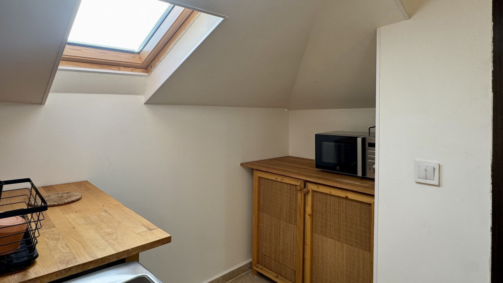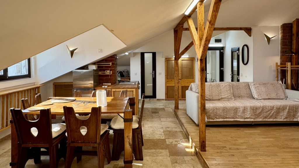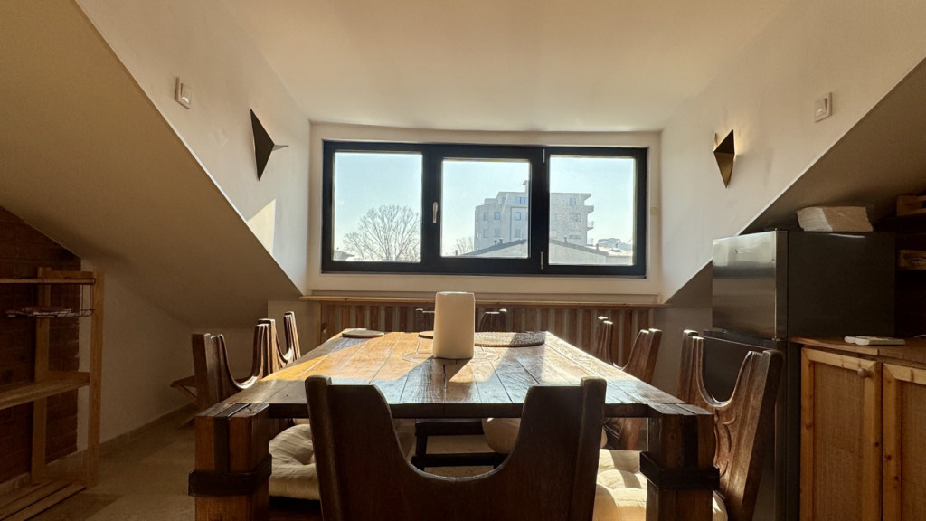 Se oferă spre închiriere un apartament atipic, tip loft, situat la etajul 2/2 al unei clădiri de pe strada Agricultori. Parterul și etajul 1 sunt locuite, însă au intrări complet separate, iar accesul către acest apartament se face printr-o scară dedicată, utilizată exclusiv de chiriașul de la etajul 2, fără trafic comun cu celelalte locuințe. Imobilul beneficiază și de o mică curte comună, liniștită. Apartamentul este rezultatul unei mansardări transformate într-un spațiu de locuit, cu tavane înalte și o senzație aparte de deschidere și libertate. Datorită numărului mare de ferestre și a ferestrelor tip skylight, spațiul este foarte luminos pe tot parcursul zilei, oferind o atmosferă aerisită, cu o ușoară senzație de sunroof. Suprafața utilă este de 60 mp, iar suprafața totală ajunge la aproximativ 90 mp, datorită numeroaselor spații de depozitare integrate perimetral, realizate sub formă de mobilier cu sertare și compartimentări inteligente, completate de două comode suplimentare, care oferă un plus de funcționalitate. Zona de zi este amenajată într-un concept open-space, cu zona de dormit delimitată discret printr-un panou decorativ. Livingul este ușor înălțat față de restul spațiului, creând o senzație de „insulă” și delimitare naturală a funcțiunilor. Apartamentul dispune de terasă proprie de 8 mp utili, perfectă pentru relaxare, precum și de boxă la subsol, de care chiriașul beneficiază pentru depozitare suplimentară. La intrare vor fi adăugate două pantofare, dedicate noului chiriaș. Locuința este dotată cu centrală termică proprie, două aparate de aer condiționat, bucătărie complet mobilată și utilată, iar baia beneficiază de fereastră pentru ventilație naturală. Mobilarea este realizată predominant din lemn, cu grinzi aparente și accente de cărămidă, oferind un aer cald și primitor, cu o atmosferă de loft cu influențe montane. Apartamentul este ideal pentru o persoană sau un cuplu care își dorește un spațiu unic, luminos și cu personalitate, diferit de apartamentele clasice, într-o zonă centrală și bine conectată. Id intern: GC20283