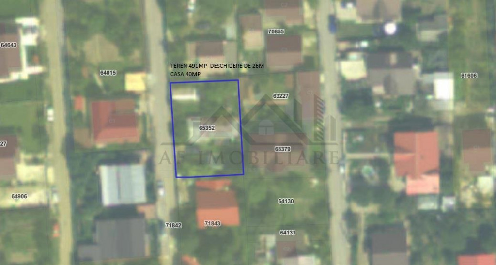 Ag.A.F.Imobiliare va propune spre vanzare, TEREN 491mp intravilan cu deschiderea la str pietruita de 26,10m si adancimea de 18,81mp.