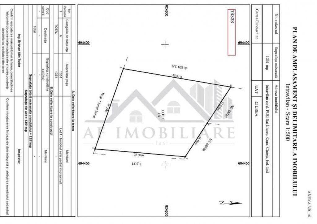 Lunca Cetatui -cartier Chihan, teren 1351 mp intravilan cu t