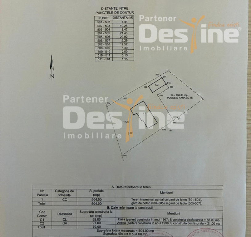 DESTINE IMOBILIARE vă prezintă pentru vânzare: Casă + Teren 692 mp – LUNCA PAȘCANI – La doar 6 KM de oraș PREȚ: 40.000€ DETALII DESPRE PROPRIETATE: - Suprafață teren: 692 mp - Construcție existentă: casă bătrânească (locuibilă) - Gaze disponibile la proprietate - Apă de la rețea în curte - Canalizare la poartă - Proprietate ideală pentru locuit permanent sau casă de vacanță LOCAȚIE: -Sat Lunca, la doar 6 km de Pașcani -Zonă liniștită, cu acces facil către oraș și drumuri principale -În apropiere: spații comerciale, școală, autogara, gara VINO LA VIZIONARE: Contact: Dănuț Ilinca – 0757.575.773 Cod ofertă: P-4059 Id intern: P4059