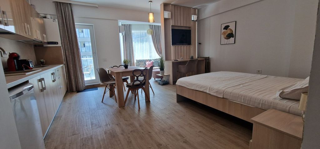 Agentia Acord Imobiliar va ofera spre achizitie un studio cu suprafata utila de 41 mp plus balcon 3 mp. Blocul este foarte aproape de plaje la doar 350ml, in spatele magazinului Lidl. Se vinde mobilat si utilat , cu loc de parcare in proprietate. Blocul are piscina proprie si este destinata doar celor care locuiesc aici. Vizionarea ofertei se face in baza acordului de vizionare.
