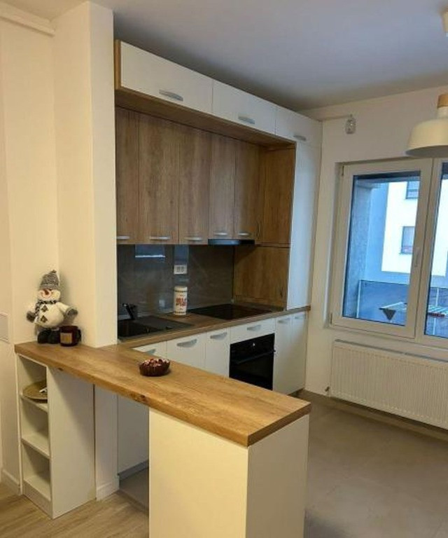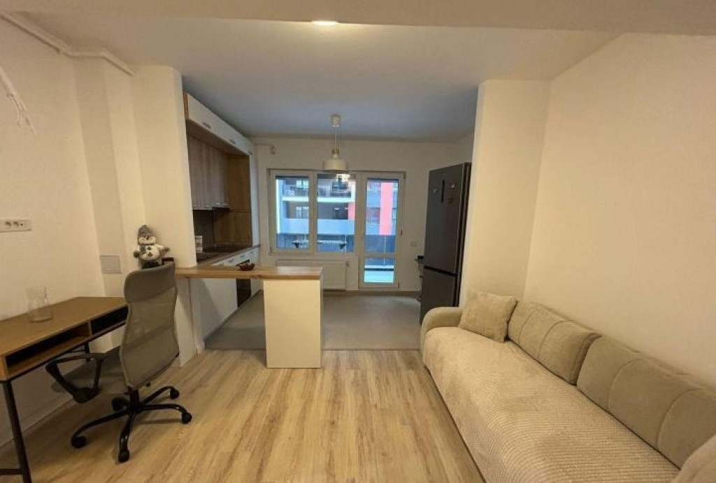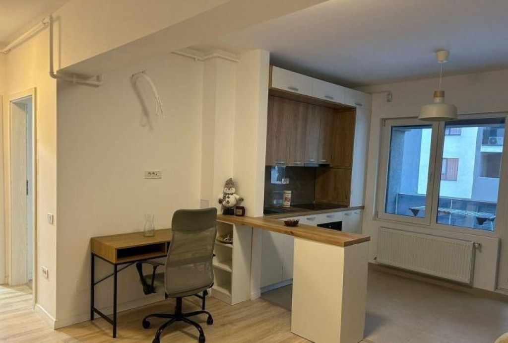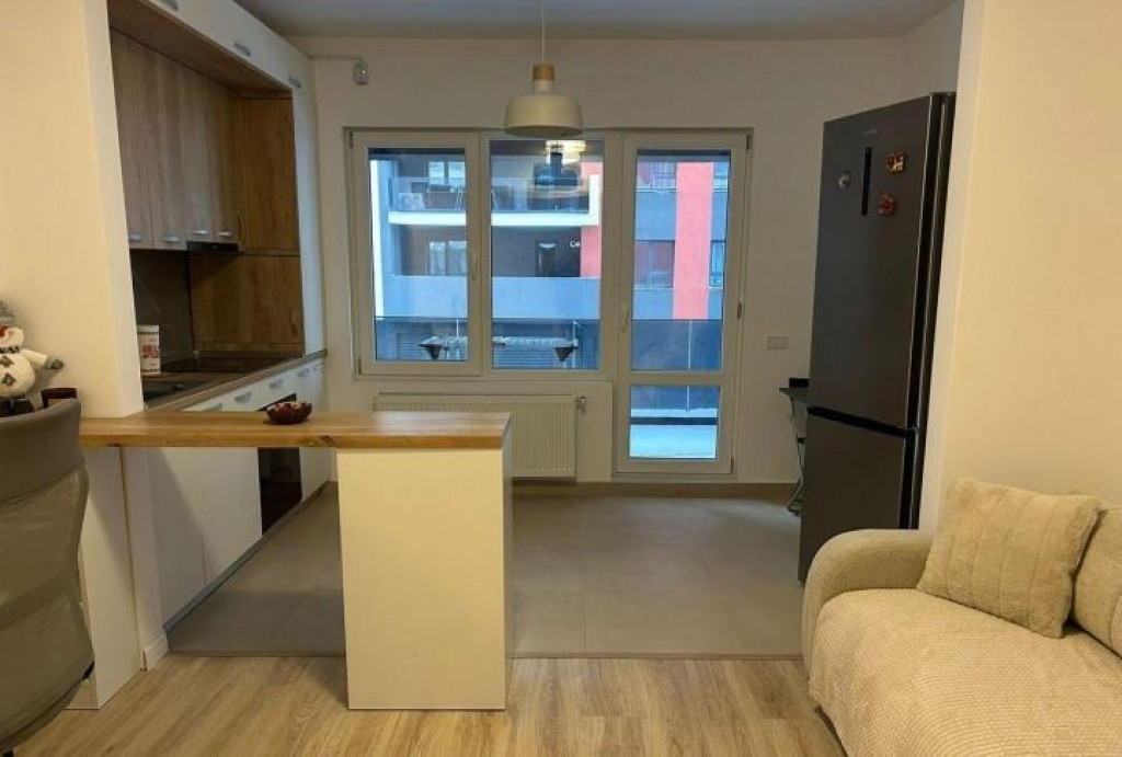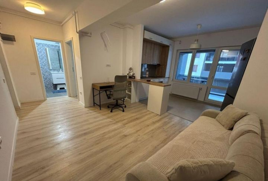 apartament modern cu 2 camere, tip open-space, cu bucătărie open în living și un dormitor separat. Apartamentul este complet mobilat și utilat, ideal pentru un cuplu sau o persoană singură.