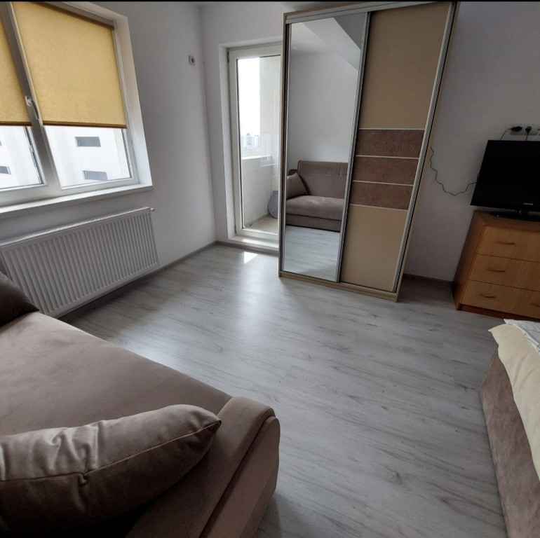 spre închiriere garsonieră spațioasă de 39 mp, etaj 4/6, zona Grand Arena, bloc finalizat în 2023, cu lift. Imobilul este la prima închiriere, dispune de centrală termică, balcon și este la 3 min de stația de autobuz 241, având rută directă la metrou Apărătorii Patriei. Dispune de: frigider, mașină de spălat, mobilă de bucătărie nouă, cuptor electric (nou, a fost folosit de maxim 2 ori), plită pe gaz (nouă), cuptor cu microunde (foarte puțin folosit), hotă (nouă), aer condiționat, TV, Wi-Fi, canapea extensibilă, pat de mijloc cu somieră și noptiere, dressing, exact ce este în poze. A fost mobilat și gândit inițial pentru uz personal. În apropiere sunt diverse magazine de cartier, dar și magazine mari precum: Kaufland, Lidl, Carrefour, Selgros, Profi, Froo. Nu cu animale de companie și posibil fumători. viitorul chiriaș să fie serios, liniștit și să mențină curățenia. Preț: 2000 lei