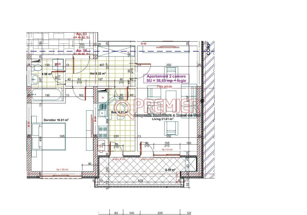 - SUPRAFATA UTILA - 58,63 mp