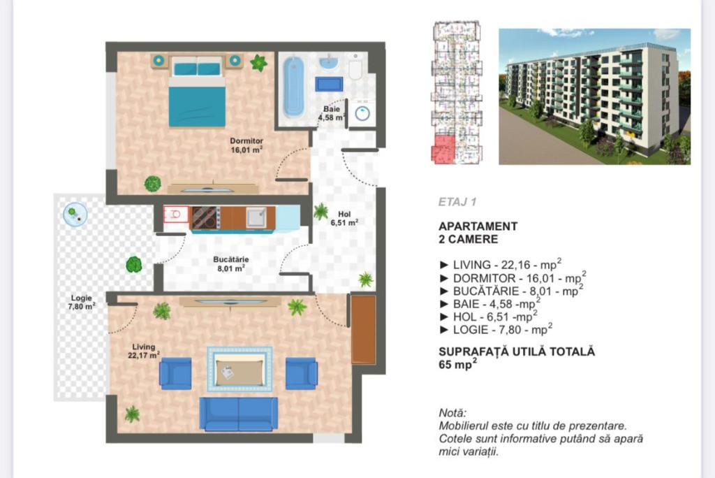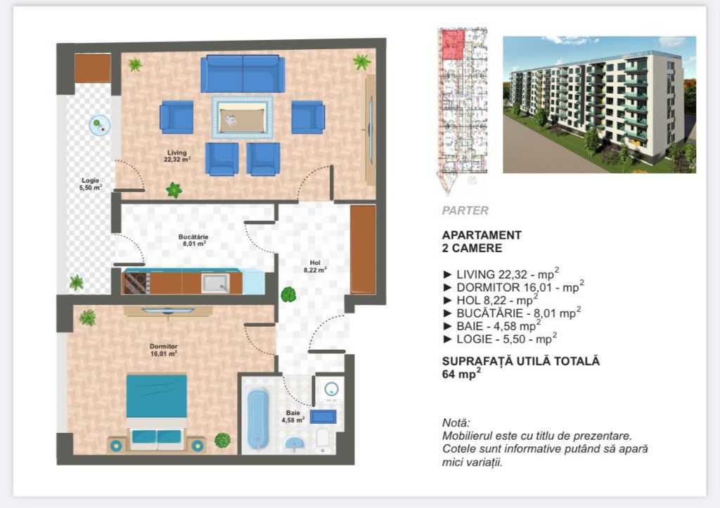 APĂRĂTORII PATRIEI - APARTAMENT 3 CAMERE-DIRECT DEZVOLTATOR Vă propun spre vânzare apartament cu 3 camere și 2 băi situat Drumul Binelui - Sector 4. Constructia se afla in apropierea celor mai importante puncte de interes din partea sud a orasului, cu acces rapid catre centrul orasului prin mijloacele de transport in comun din apropierea complexului - Metrou Aparatorii Patriei 12-13 min de mers pe jos' - Statie Stb pe Bulevardul Metalurgiei-7 min de mers pe jos; - Parcul Tudor Arghezi in apropiere - Centre comerciale, sali de sport Apartamentele din complex beneficiaza de incalzire prin pardoseala. Finisaje la alegere. In momentul de fata blocul este in stadiul de constructie cu termen de finalizare al proiectului in luna Iunie 2026. Pretul nu contine tva. Oferim reducere la plata CASH. Parcare exterioara 10000 euro tva inclus. Parcare la subteran 15000 euro tva inclus. PRET: 112.000 + TVA. Consultanta in vederea obtinerii unui Credit. Detalii suplimentare sau vizionare la 0747.721.419 Silvia Brutu.