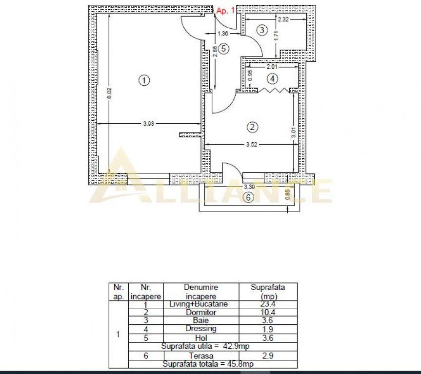 Suprafața utilă 46 m²