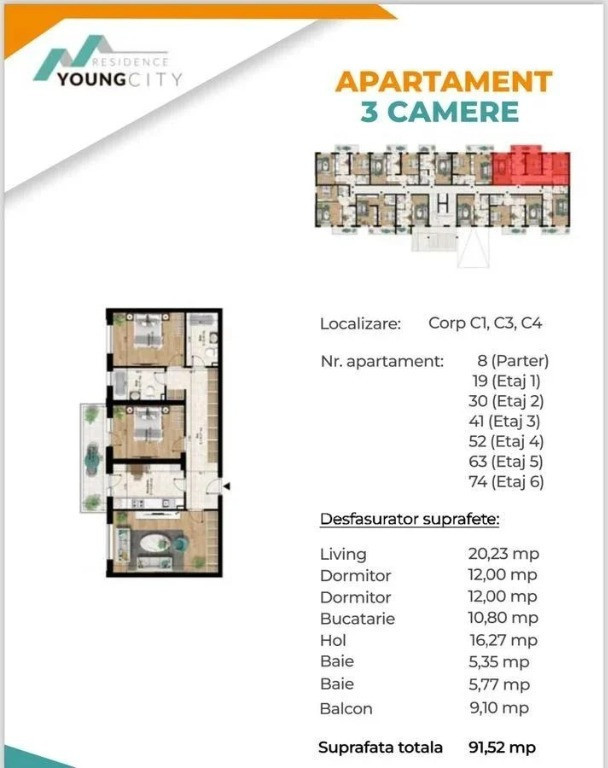 3 camere | 58 m² | Bucuresti-Ilfov / Popesti Leordeni