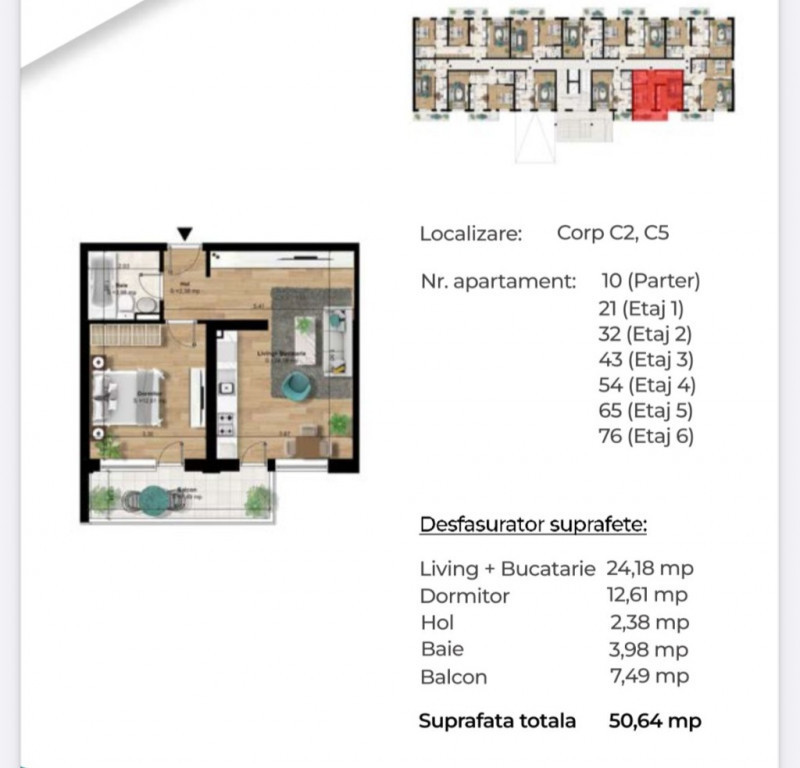 Suprafața utilă 50 m²