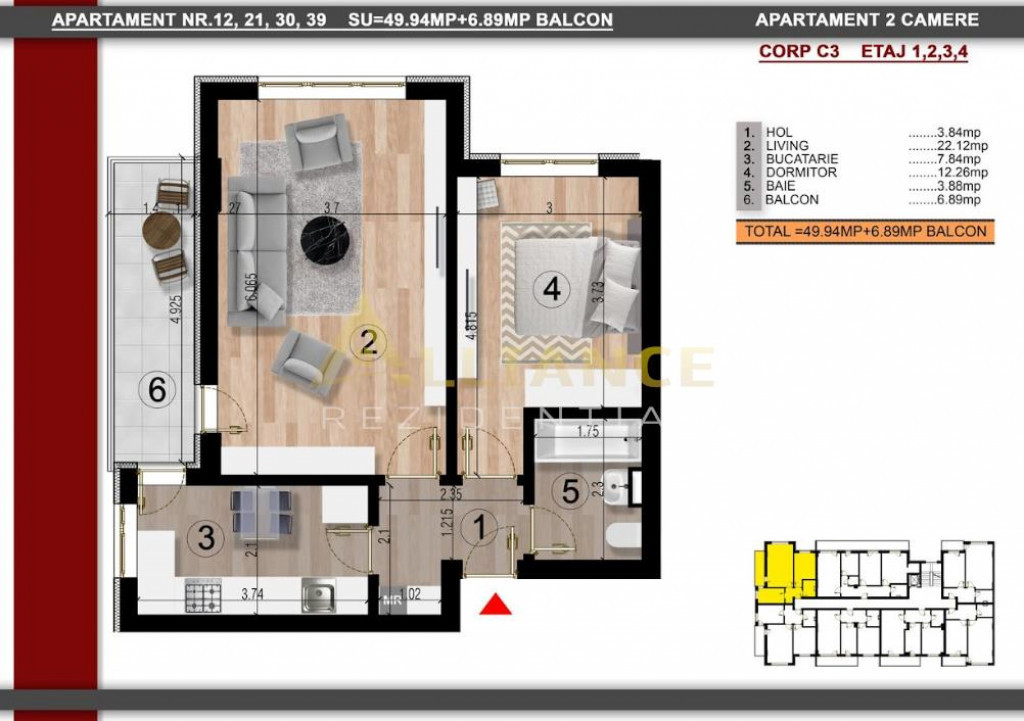 Suprafața utilă 57 m²