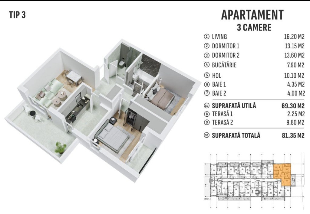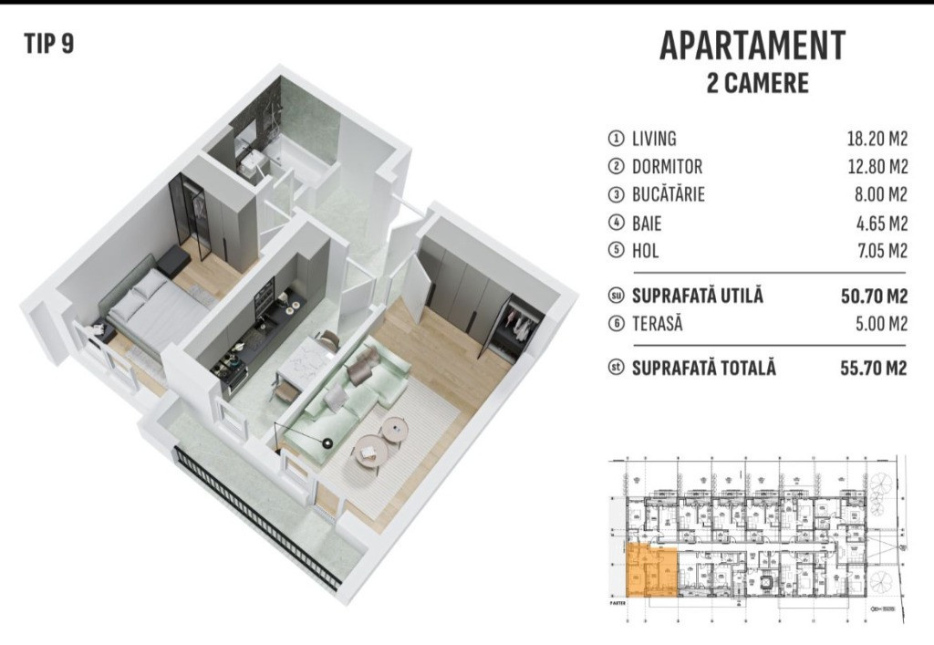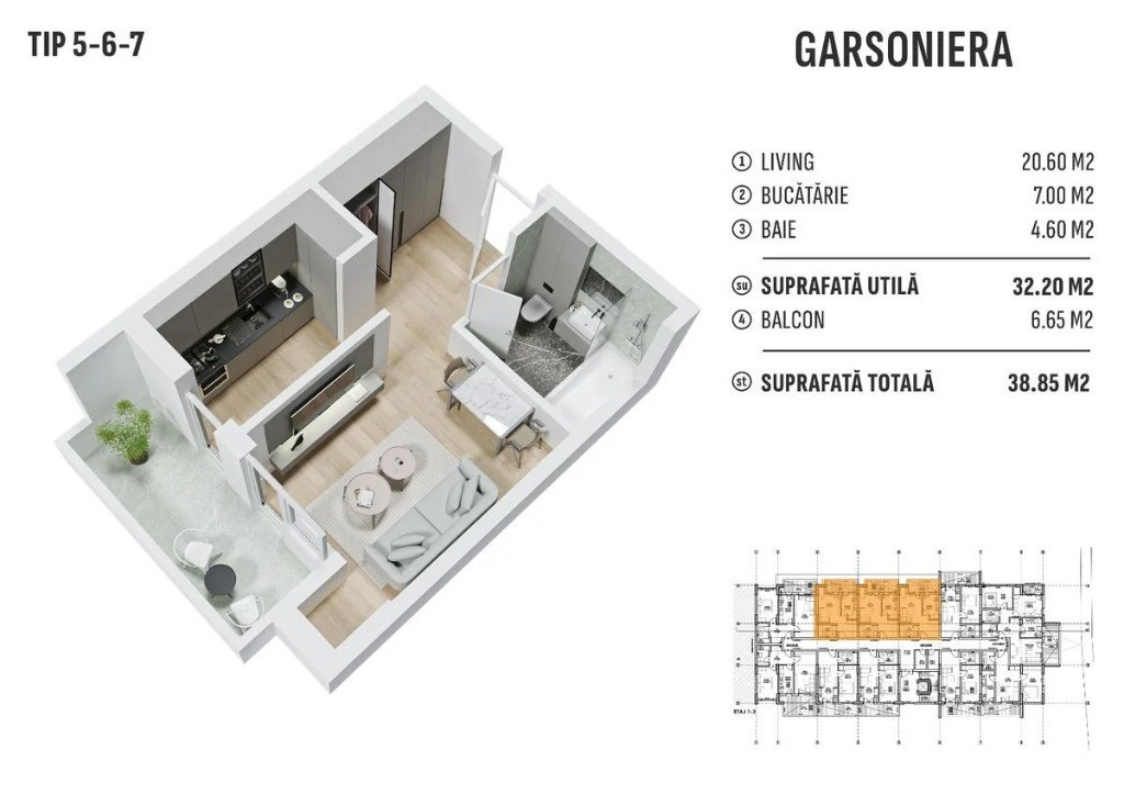 OFERTA De vanzare garsoniera decomandata situata in Popesti Leordeni, in apropierea Pasarelei Berceni. Dispune de o suprafata utila totala de 39 mp. Se afla la etajul 3, intr-un imobil de 4 etaje. Termen de finalizare: decembrie 2026. Se pot achizitiona parcari terane la pretul de 7.500 euro, tva incus sau parcari subterane la pretul de 9000 euro, tva inclus. Detalii suplimentare sau vizionare la 0747.721.419 Silvia Brutu.