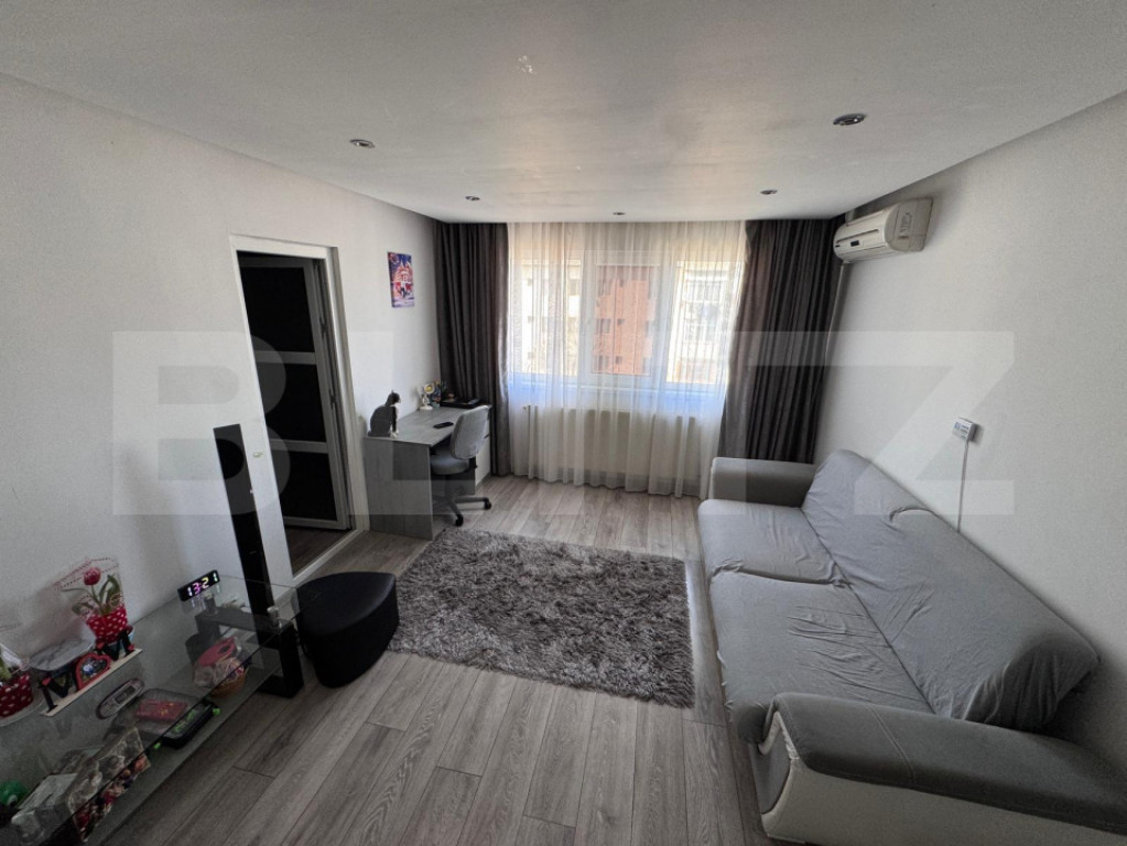 BLITZ vă propune spre vânzare un apartament situat în zona Micro 6, amplasat la etajul 4 al unui imobil cu 4 niveluri, cu acoperiș refăcut. Locuința se vinde mobilată și utilată, fiind pregătită pentru mutare imediată. Apartamentul dispune de centrală termică proprie, aer condiționat, balcon, loc de parcare și spațiu de depozitare în podul blocului si acces la uscatorul blocului. Instalația electrică a fost schimbată, oferind un plus de siguranță și confort viitorilor proprietari. Imobilul este bine întreținut, iar poziționarea la ultimul etaj asigură intimitate și lumină naturală pe tot parcursul zilei. Acoperișul a fost refăcut, eliminând orice grijă legată de infiltrații. Apartamentul se vinde fără obiectele personale, frigider, un birou și televizor. Proprietatea reprezintă o alegere potrivită atât pentru locuință proprie, cât și pentru investiție, datorită poziționării și dotărilor existente. Pentru mai multe detalii sau pentru programarea unei vizionări, vă stăm cu plăcere la dispoziție. Cod ofertă / ID BLITZ: P166002 Id intern: P166002