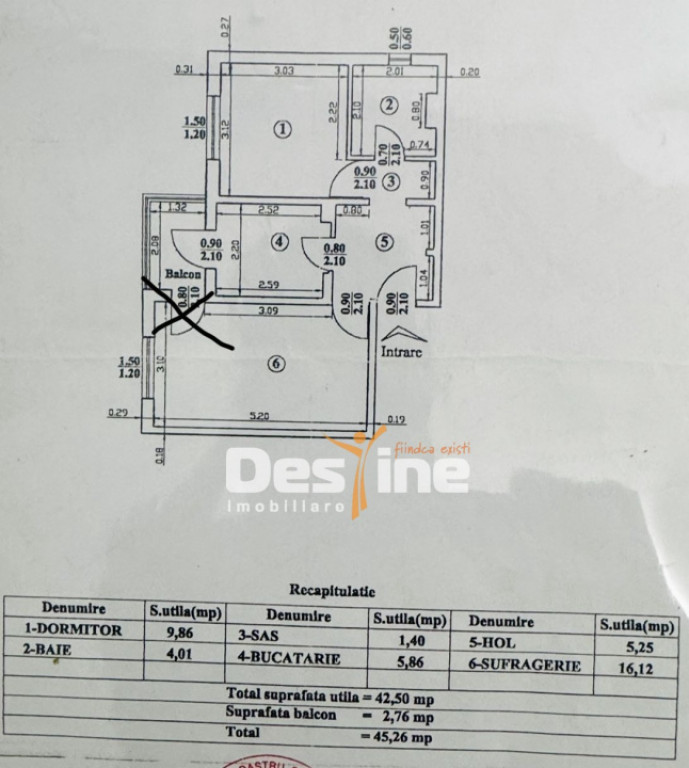 Suprafața utilă 45 m²