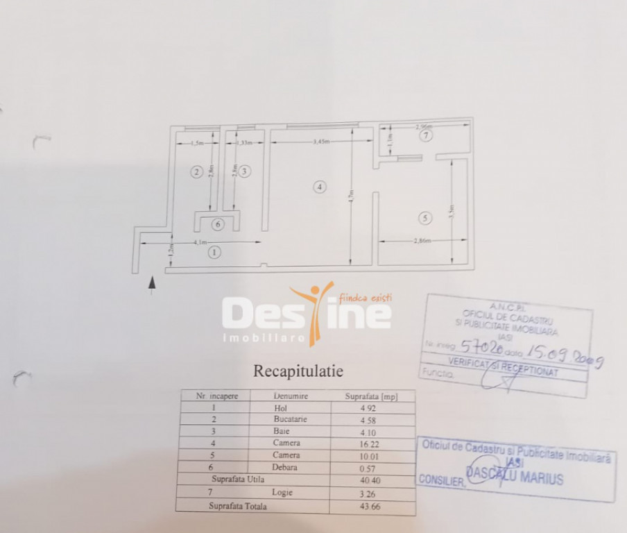DESTINE IMOBILIARE vă propune spre vânzare un apartament cu 2 camere, nedecomandat, situat în cartierul Mircea cel Bătrân. Caracteristici: - Suprafață totală: 43,66 mp - Compartimentare: nedecomandat - Etaj: 1/4 - An construcție: 1974 - Balcon tip logie - Baie cu geam - Centrală termică proprie - Mobilat și utilat Apartamentul se află într-o zonă liniștită, foarte bine conectată la mijloace de transport, magazine, școli și alte puncte de interes. Ideal pentru locuit sau investiție! Preț: 83.600 EUR Pentru detalii sau programare vizionare, scrie-mi în privat: 0757.910.832 Ilie Loghin Cod ofertă: P- 4407 ❗️❗️❗️IMPORTANT❗️❗️❗️ ????Această proprietate poate fi achiziționată și prin intermediul unui CREDIT, iar noi suntem aici să vă facilităm acest proces. ✅Datorită parteneriatelor noastre strânse cu cele mai importante instituții bancare, vă putem oferi asistență GRATUITA în obținerea finanțării potrivite pentru dumneavoastră: CREDIT IPOTECAR, PRIMA CASĂ sau de NEVOI PERSONALE. ℹ️Pentru informații suplimentare, nu ezitați să ne contactați ! Id intern: P4473