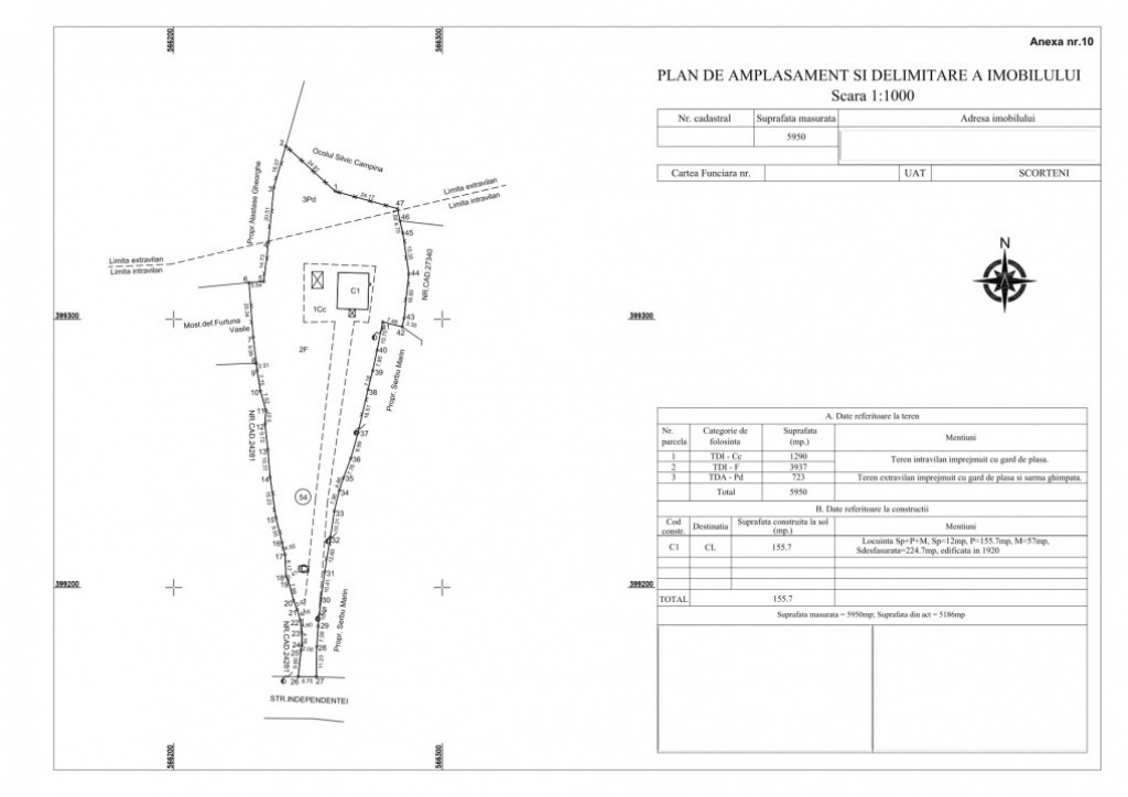 În zona deluroasă a Prahovei, în localitatea Scorțeni, este disponibilă la vânzare o proprietate cu mult potențial - este genul de moșie boierească cu casa în vârf de deal, cu livadă mare în față și cu un pâlc de pădure în spate ce înconjoară un luciu de apă. Clima este mai blândă aici, verile sunt mai puțin caniculare, cu ploi mai bogate și iernile cu mai multă zăpadă și mai puțin geroase. Scorțeniul este la 10km de Câmpina și Băicoi, la 20km de Ploiești și la 85km de București, distanță ce poate fi parcursă în cca. 1h 30m. Spre nord sunt 45km până la Sinaia și 90km până la Brașov. Lotul de teren este generos, având o suprafață de 5.950mp, iar accesul se face din strada principală Scorțeni-Mislea, la aproximativ 10km de DN1. Este o proprietate deosebită prin suprafață, poziția retrasă în cadrul localității, retragerea casei la mai bine de 100m de strada principală, amplasată sus pe deal, cu o priveliște panoramică, ferită de zgomotul drumului județean Băicoi - Câmpina. Casa este formată din parter, mansardă și pivniță, suprafață totală utilă fiind de 221mp: • Parter - 130mp - 4 camere, baie, bucătărie, wc • Mansarda - 50mp, pod - 23mp, terasă - 10mp • Pivniță - 9mp. Utilități - apă curentă, energie electrică și gaze, încălzirea se realizează prin centrala proprie pe gaz. În acest moment, casa are nevoie de consolidare și reparații totale sau poți renunța la ea și să construiești casa la care te gândești. Această proprietate este pentru acei oameni care vor să-și petreacă viața în inima naturii, departe de agitația orașului, pe o suprafață generoasă de teren în care să ai liniște și să fii mai aproape de natură. De-ți plac copacii, poți avea o minunată livadă, să trăiești bucuria reînvierii naturii în fiecare primăvară, să-ți petreci vara la umbra copacilor, toamna să te bucuri de rodul pomilor plantați de tine și iarna să poți privi pe fereastră pe deasupra copacilor până departe în zare. Poți să te dai cu sania la tine în curte, copiii tăi vor fi cei mai bucuroși. Vor putea consuma fructe și legume din curtea lor, se vor putea urca în copaci, vor coborî și urca dealul oricând își doresc. Vor uita de telefoane și de alte device-uri care îi distrag de la legătura cu ei și cu natura. Vă aștept la vizionare să faceți alegerea corectă pentru voi! Proprietatea este reprezentată exclusiv de agenția imobiliară TUDOR City. Comisionul este 0% pentru cumpărător. Id intern: 12389