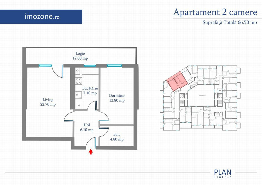 Va prezint un apartament cu doua camere, decomandat, bine compartimentat, cu suprafata de 66,5 mp, cu logie de calitate 12 mp, bucatarie inchisa cu suprafata de 7.1 mp, situat la etajul 10, intr-un bloc cu 10 etaje. Apartamentul se preda finisat la cheie, cu baie complet dotata, cu obiecte sanitare montate si bransat la toate utilitatile. Finisajele sunt de buna calitate, executate cu atentie la detalii iar in unele situatii chiar vi le puteti alege, in anumite conditii. Termen de finalizare: Proiect finalizat. Apartamente finisate pregatite pentru a te muta rapid. Zona in care se afla imobilul este una foarte usor accesibila, cu acces rapid catre mijloace de transport in comun (metrou, autobuz, troleibuz, tramvai) dar si catre principalele artere sau bulevarde. Tot in zona, la numai cateva minute, sunt numeroase facilitati precum; scoli, gradinite, centre medicale, centre comerciale, parcuri etc.. Proiectul contine peste 20 de variante de apartamente cu doua sau trei camere, cu diferite suprafete, compartimentari dar si orientari. In urma unei vizite la proiect va voi prezenta toate disponibilitatile si impreuna putem identifica proprietatea potrivita. IMOZONE 0742 400 300