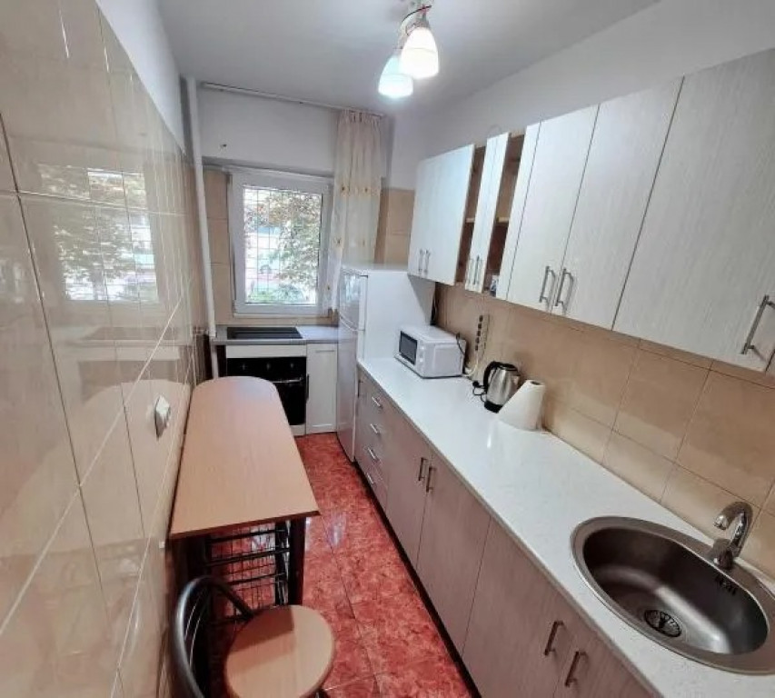 garsonieră cu suprafața de 37 mp, renovată, electrocasnice noi (plită și cuptor electrice, mașină spălat, uscător, aer condiționat, microunde, frigider, etc), se află la prima închiriere. Este situată la parterul unui imobil construit în anul 1997 (folosință 2000), la 7 minute distanță de mers de stația de metrou Timpuri Noi. Garsoniera este decomandată, mobilată și ferită de zgomotul și agitația de la bulevard. Zona este bună și conectată la transportul public. Blocul este curat, foarte bine administrat, cu spațiu verde în față, dispune de 2 parcuri și locuri de joacă situate fix lângă bloc. De asemenea există în apropiere școală și grădiniță, precum și locuri de parcare disponibile lângă bloc. Este pretabilă atât ca locuință, cât și ca spațiu de activitate pentru liber profesioniști (avocat, notar, psiholog, contabil, arhitect, etc.).