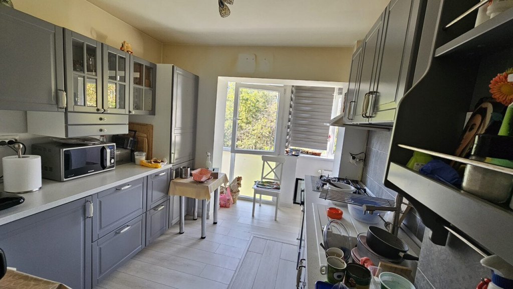 NORD zona Complexul Mare, apartament 3 camere modernizat - total renovat , confort1 , semidecomandat situat la etajul 2 , cu vedere spate si lateral , avand 2 balcoane : unul la sufragerie si bucatarie si al doilea la cele doua dormitoare. Baie are geam spre exterior. Apartamentul prezinta multiple imbunatatiri fiind renovat total , inclusiv instalatie electrica si sanitara , aer conditionat . Acte la zi . Bonus se vinde semimobilat - utilat la pretul de 82000 euro. Precizati ca ati vazut oferta cu ID-ul: 4913