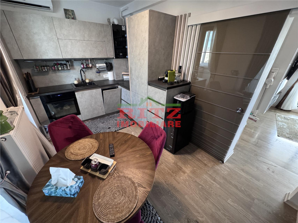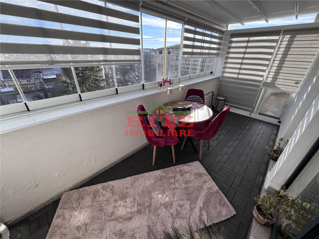 RITZ Imobiliare Slatina va prezinta un apartament cu adevarat remarcabil, un mini-penthouse, situat intr-una dintre cele mai apreciate si linistite zone centrale ale municipiului Slatina, zona Liceul Ion Minulescu. Proprietatea dispune de o suprafata utila de 58 mp si este completata de o terasa impresionanta de 32 mp, care inconjoara apartamentul si ofera o priveliste spectaculoasa asupra orasului. Terasa devine un spatiu ideal de relaxare in orice anotimp, o parte fiind inchisa cu tamplarie PVC de calitate si cortina retractabila, si usor de incalzit pe timpul iernii, fara probleme de infiltratii. Accesul pe terasa se face din toate incaperile, living, dormitor si bucatarie, oferind lumina naturala din plin. Apartamentul este decomandat, un detaliu esential pentru confort si functionalitate, si se afla la etajul 4 din 4 al unui bloc construit in anul 2019, reabilitat termic, cu un singur apartament pe palier, aspect ce asigura intimitate si liniste deplina. Finisajele sunt de lux, realizate cu materiale atent alese, de la tamplaria premium QFORT pana la parchetul de 13 mm, totul fiind gandit pentru un stil de viata modern si rafinat. Se vinde complet mobilat si utilat, exact ca in prezentare, beneficiind de centrala termica Ariston in condensare, trei aparate de aer conditionat, trei televizoare Smart, hota cu senzor de abur, masina de spalat vase, masina de spalat rufe, vitrina pentru vinuri si aparat de gheata. Fiecare detaliu contribuie la un nivel ridicat de confort si functionalitate. Proprietatea dispune de spatii de depozitare individuale pe casa scarii, precum si de un spatiu de depozitare la parter, in spatele blocului, ideal pentru biciclete sau diverse obiecte. Zona este extrem de linistita, bine cotata, cu acces rapid catre punctele de interes ale orasului. Aceasta proprietate este alegerea ideala pentru cei care isi doresc mai mult decat un simplu apartament, un spatiu cu personalitate, eleganta si un stil de viata premium, intr-o locatie excelenta.